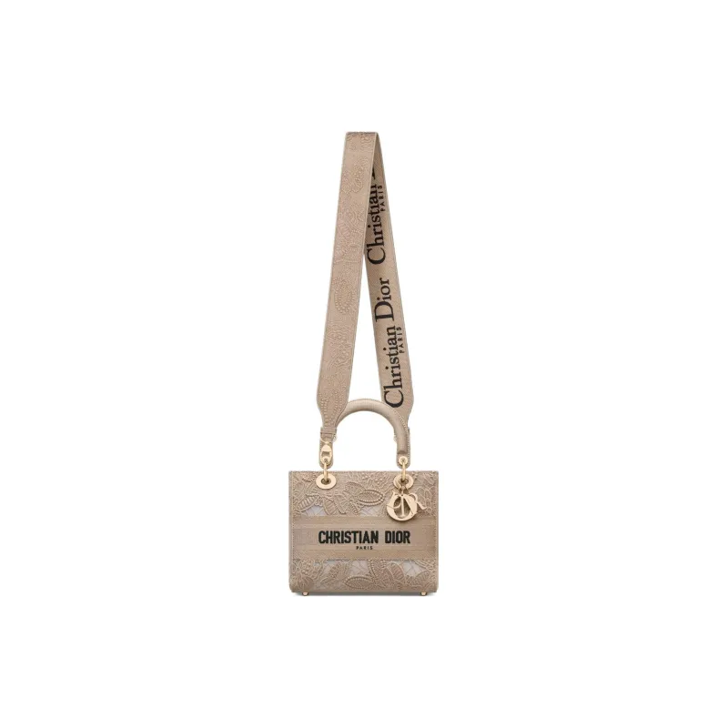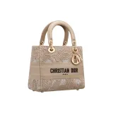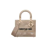DIOR LADY D Лайт Вышивка Сумка Lady Dior Сумка через плечо Сумка среднего размера Женская Бежевая