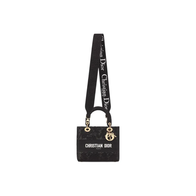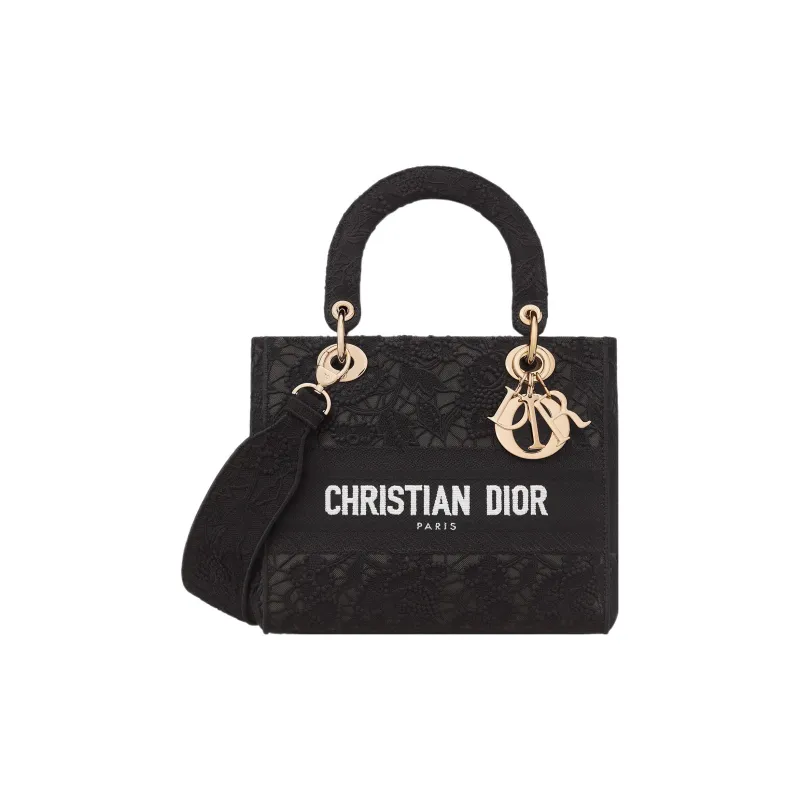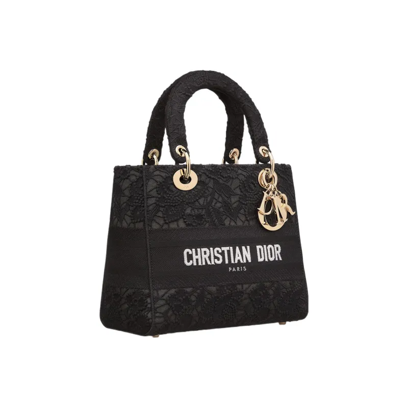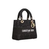 DIOR LADY D Лайт Вышивка Сумка Lady Dior Сумка через плечо Сумка среднего размера Женская Черная