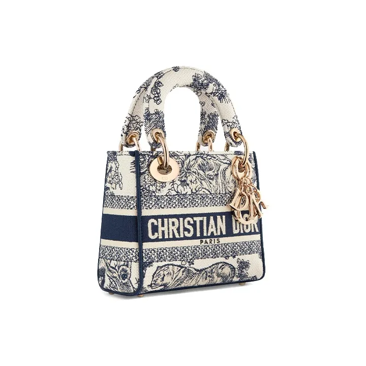 DIOR LADY D Лайт Jouy Принт Вышивка Сумка Lady Dior Сумка через плечо Сумка Мини Женская