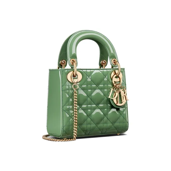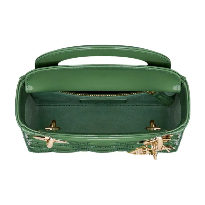 DIOR Lady Dior Лакированная кожа Коровья кожа Сумка Lady Dior Сумка Сумка через плечо Сумка через плечо Мини Женская Нефритово-зеленый