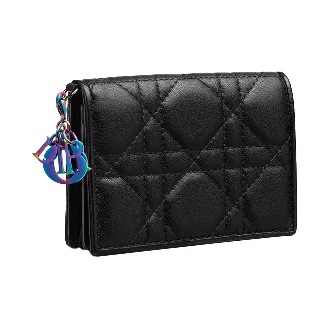 DIOR Lady Dior Sheepskin Держатель для карт кошелек картхолдер Женский Черный