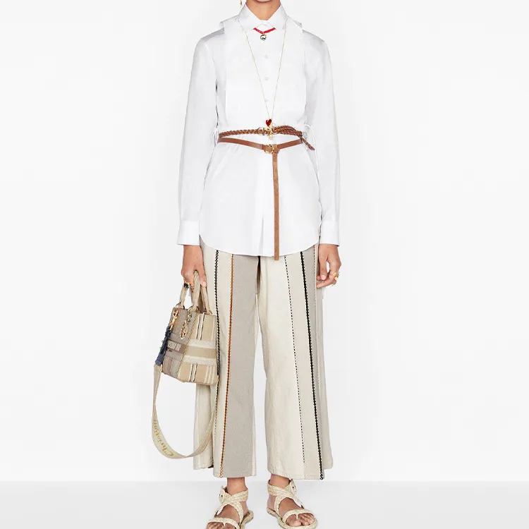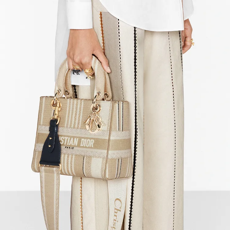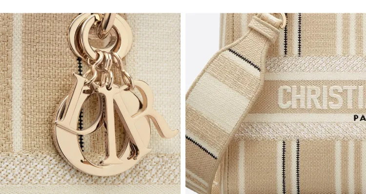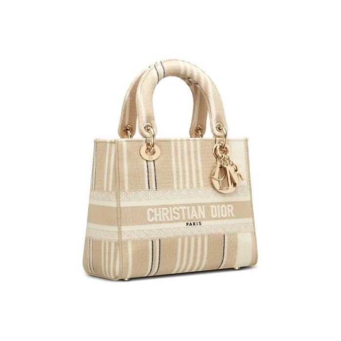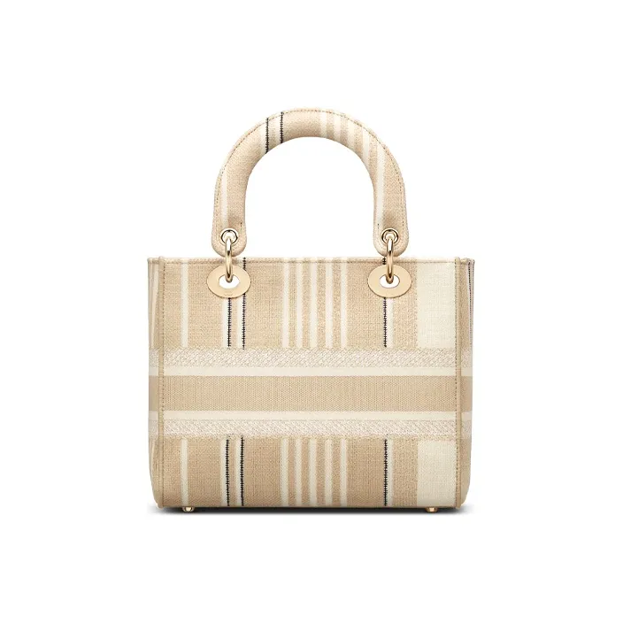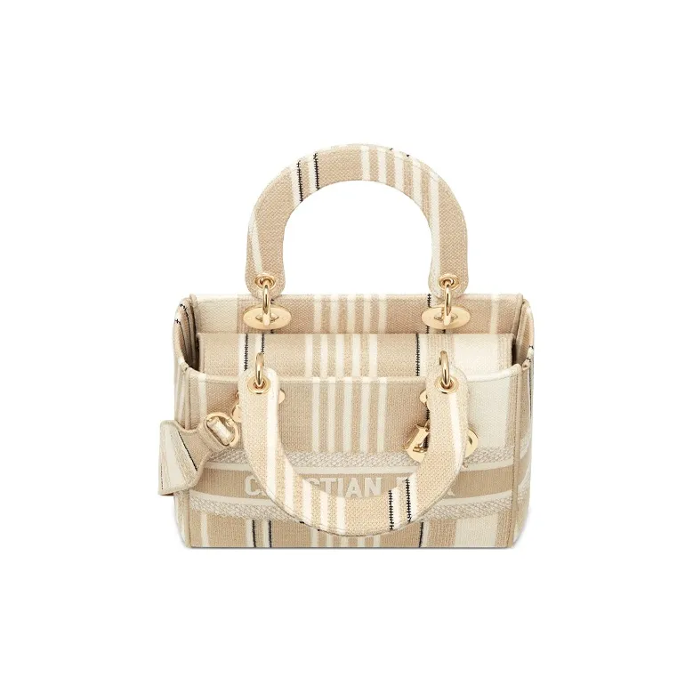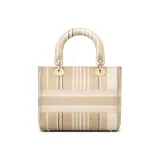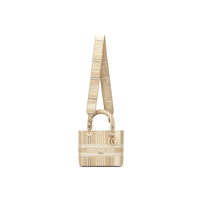 DIOR Lady Dior Полосы Вышивка Одно плечо Сумка Средний Женские Бежевый