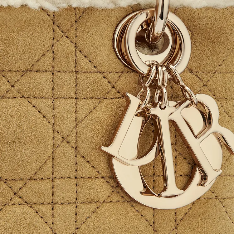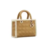DIOR Lady Dior Замшевая сумка Lady Dior сумка через плечо сумка среднего размера женская бежевая