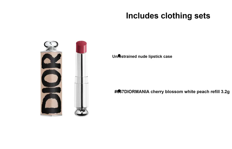 Оттенок:Двухкомпонентный комплект: Unrestrained Телесный Корпус для Помады + #667 DIORMANIA Вишневый цветок Белый персик Заправка 3,2г