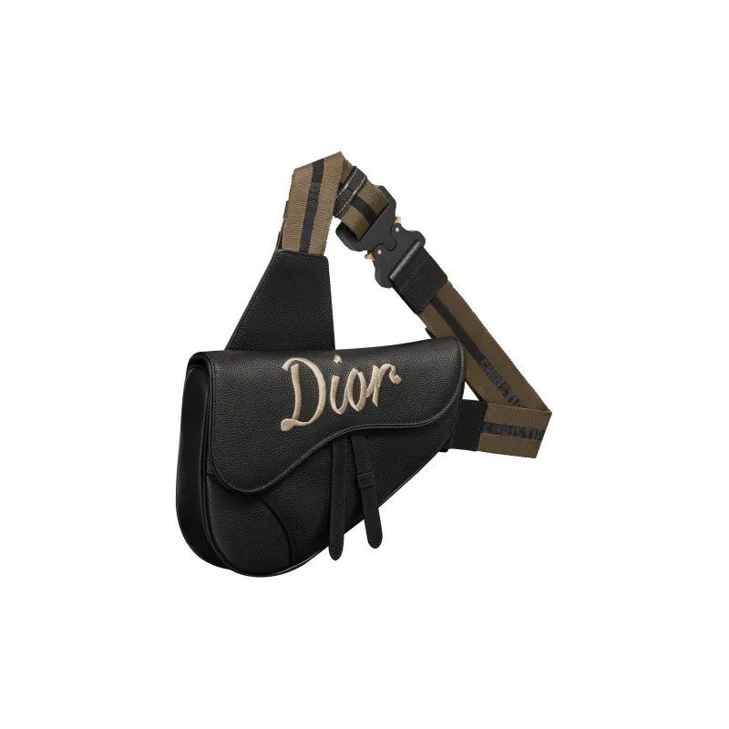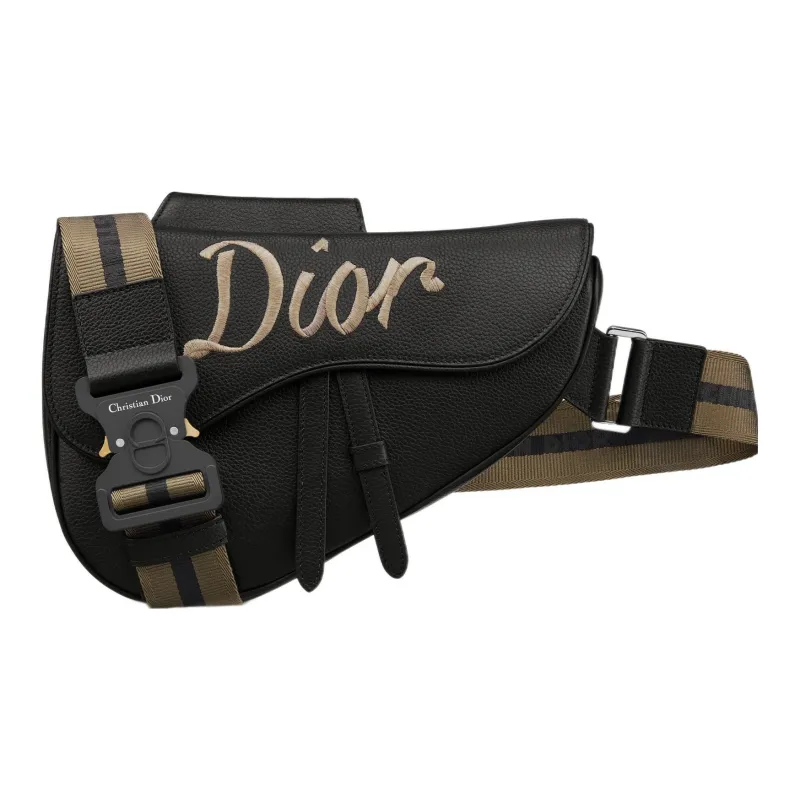 DIOR SaddleCD Ромб Гранитная Телячья Кожа Сумка через плечо Бананка Сумка на груди Сумка на плечо Мужская Черная
