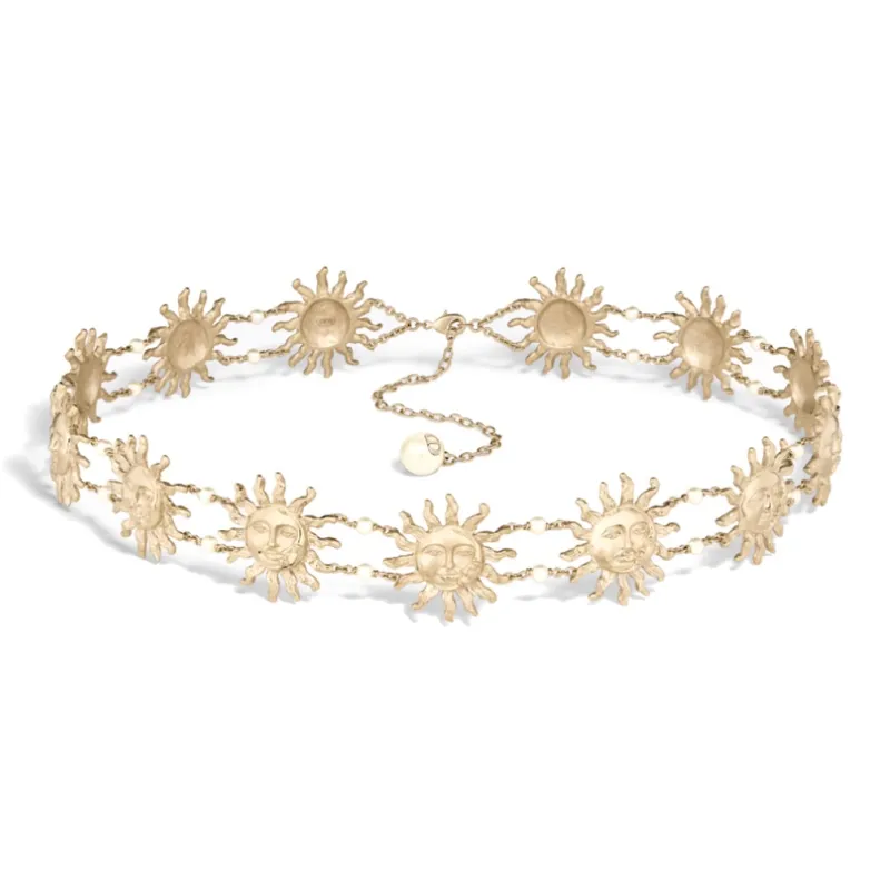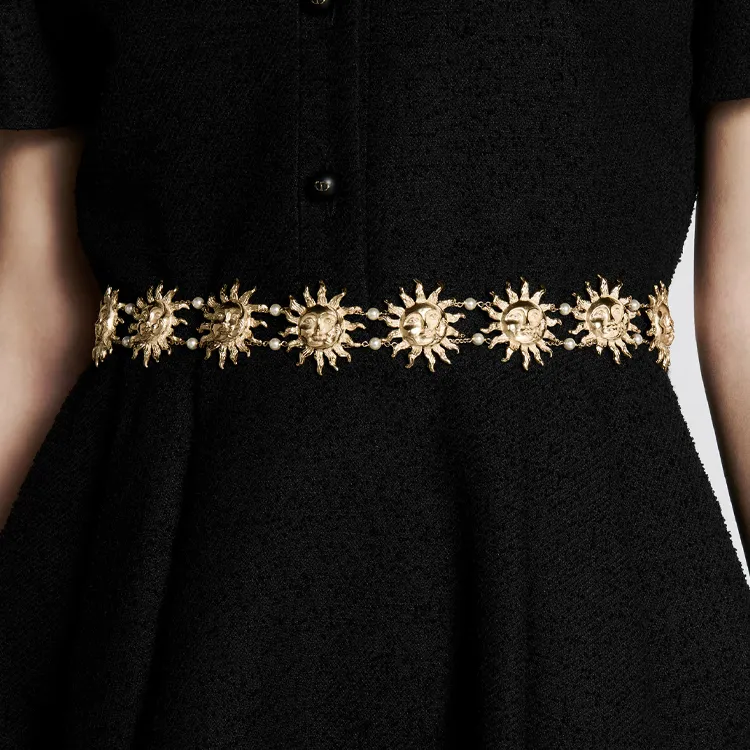 DIOR Белый жемчуг Украшенный Узор Цепи для талии Женские Золото Ширина 4CM