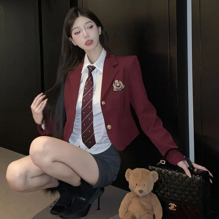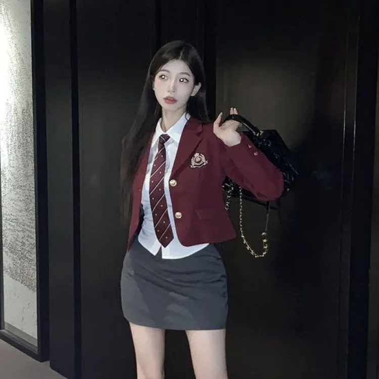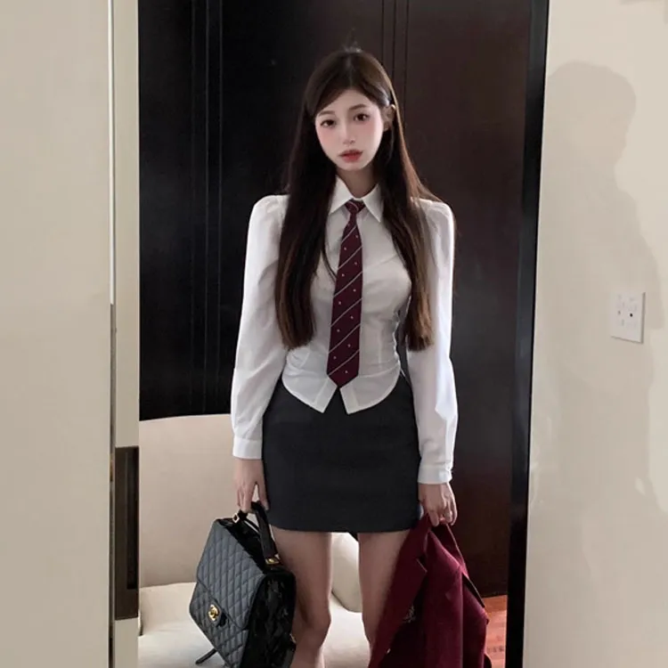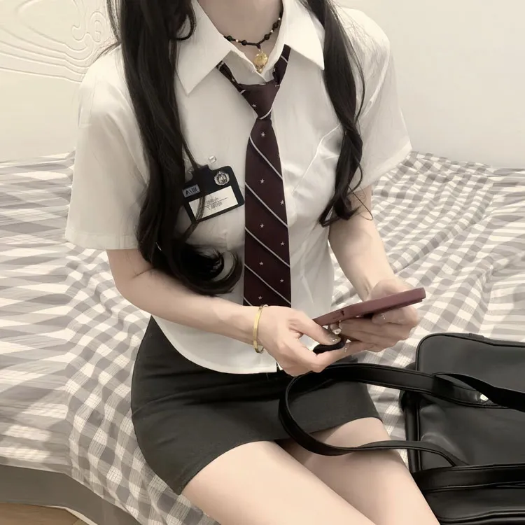 Бизнес костюм + короткая рубашка + этикетка + галстук + юбка