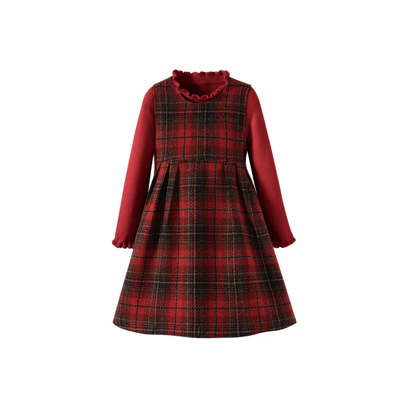 [Thickened Thermal] Solid Color Red Plaid + Solid Color Burgundy