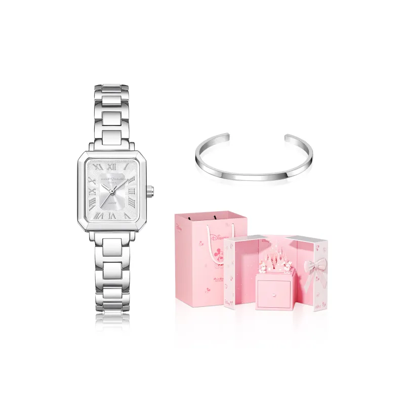 Циферблат Цвет:Серебряный Сияющий Белый [Disney Dreamy Замок Коробка + Браслет + Индивидуальная Открытка]