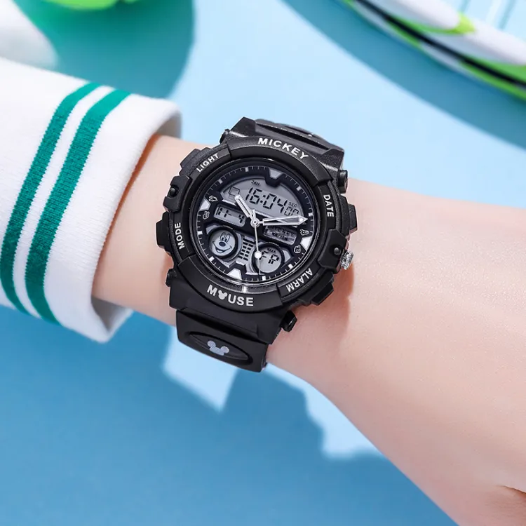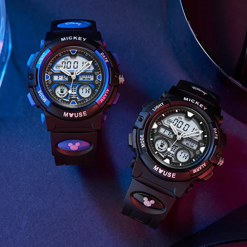 Disney Mickey Электронные механические часы Унисекс Черный циферблат
