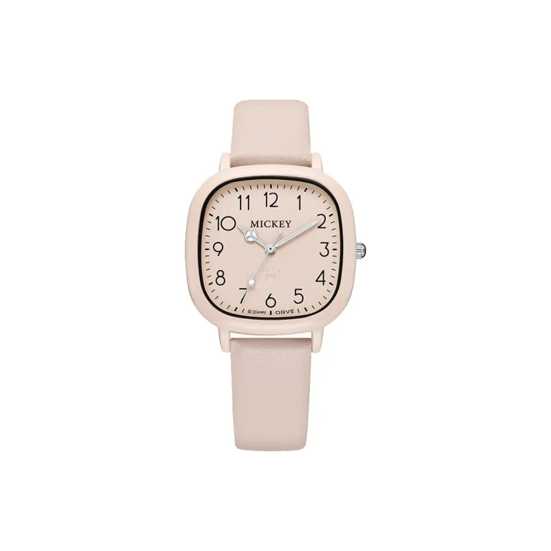 Disney Mickey Кварцевый механизм Кожаный ремешок Часы Женские Белый циферблат