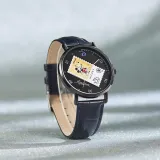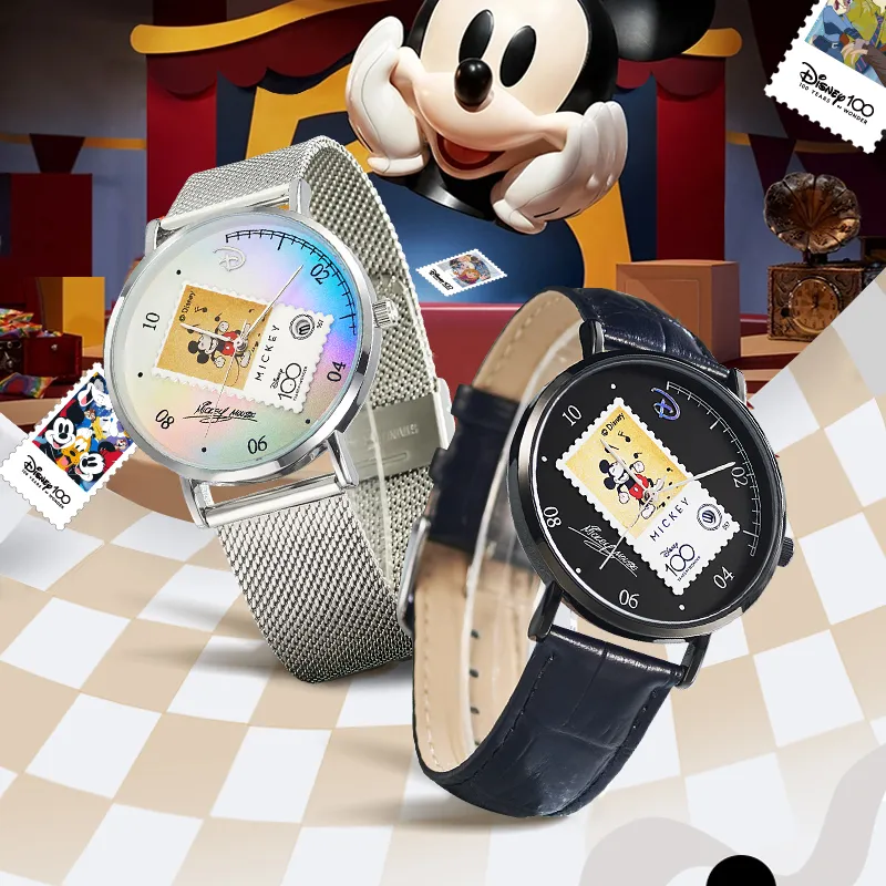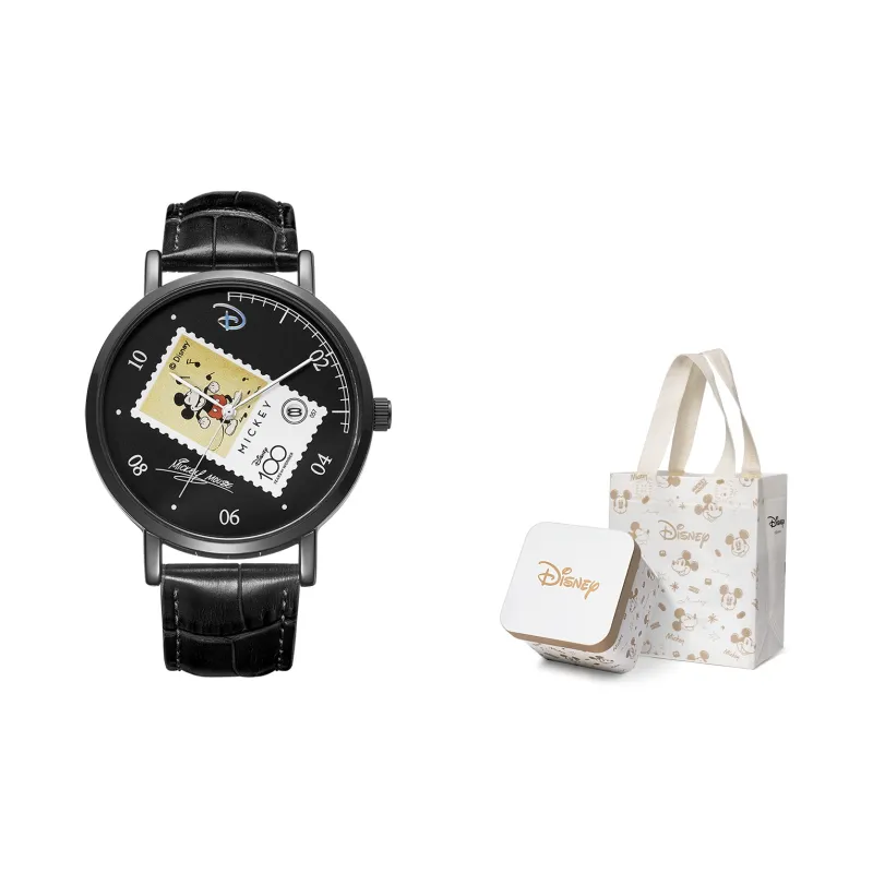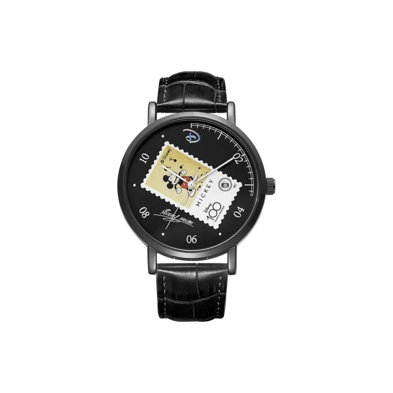 Disney Mickey Series Кварцевый механизм Естественная кожа Ремешок Часы Унисекс Черный циферблат MK 12089B