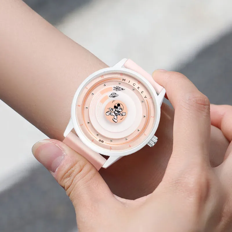 Disney Mickey Series Кварцевый механизм Силиконовый ремешок Часы Женские Апельсин Циферблат часов