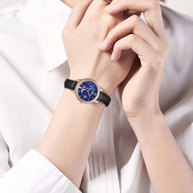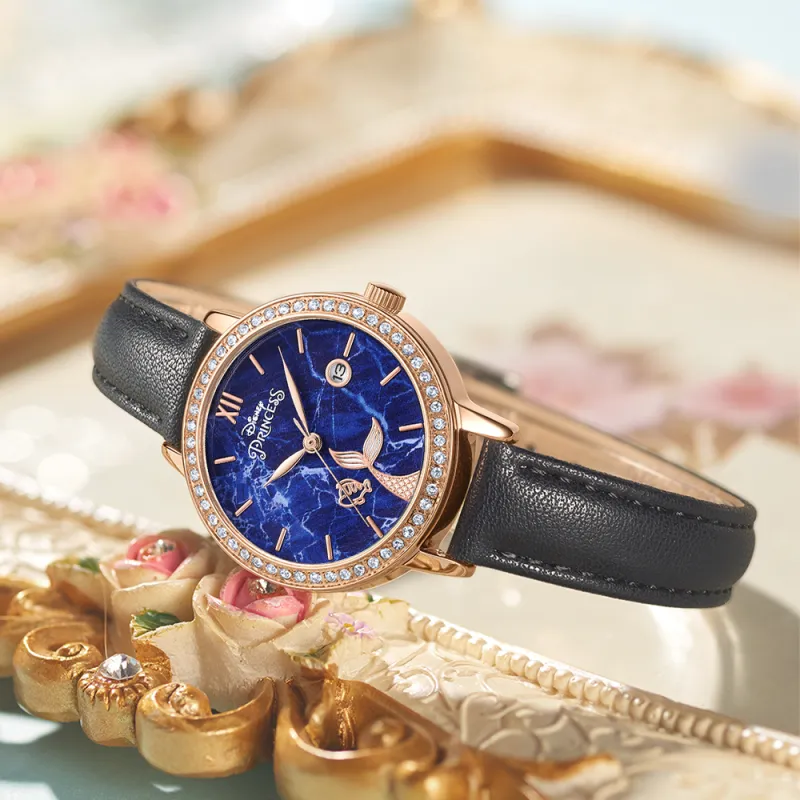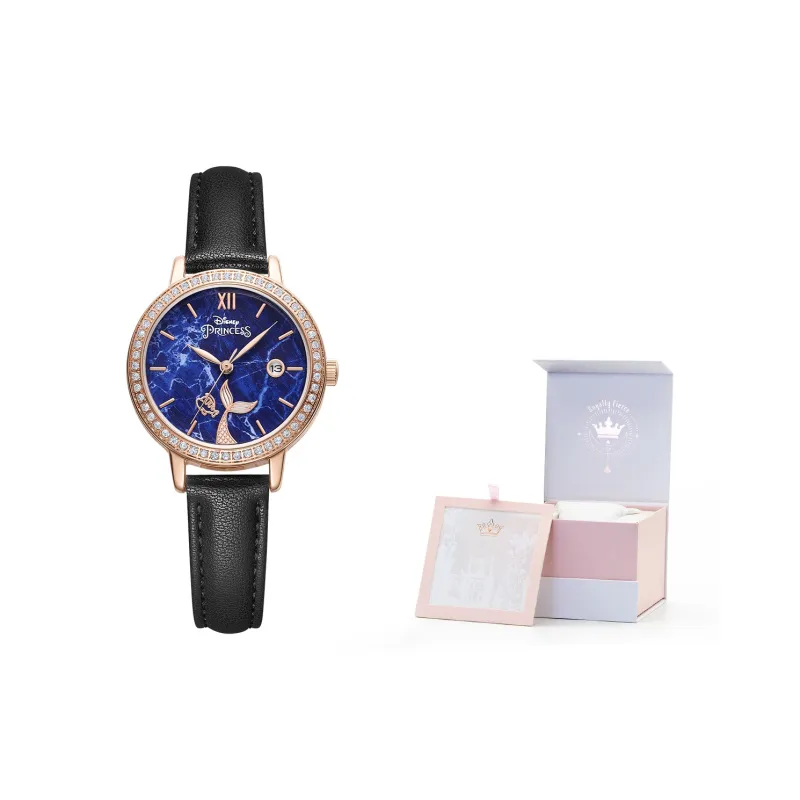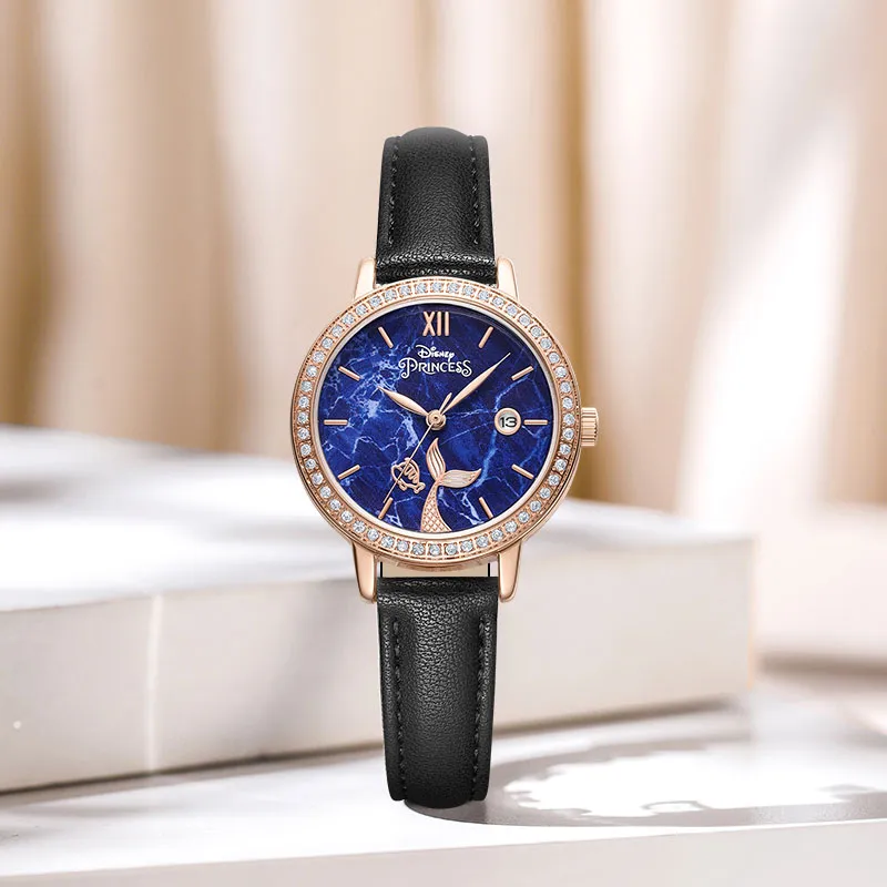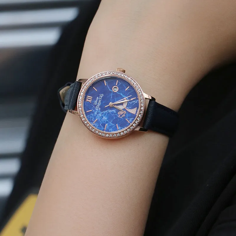 Disney Princess Кварцевый механизм Кожаный ремешок Часы Женские Синий циферблат MK 11503B