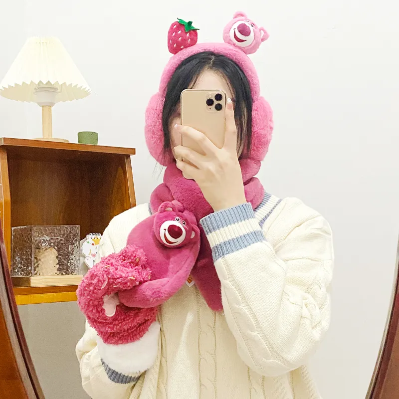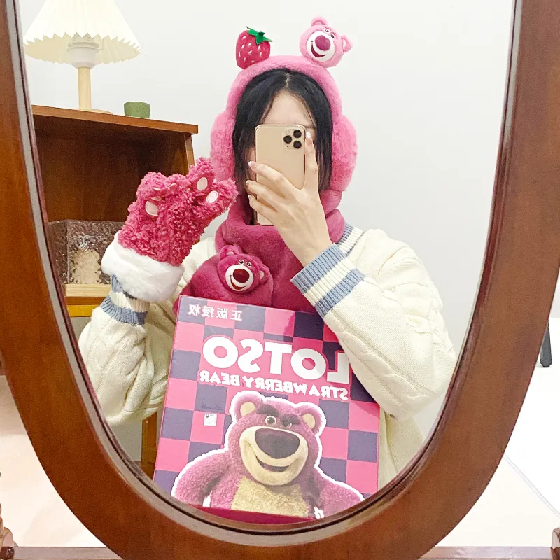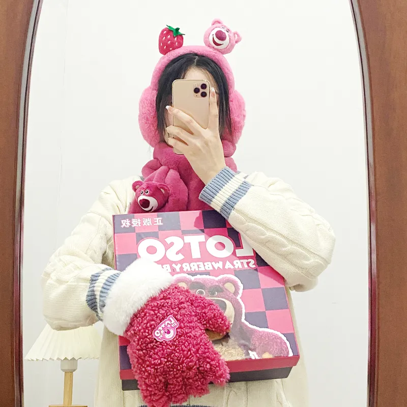 Disney Strawberry Bear Series Шапки Кепки Шарф Маска для лица Перчатка Набор из 3 шт Подарочный набор коробка 34 Аксессуары для кукол