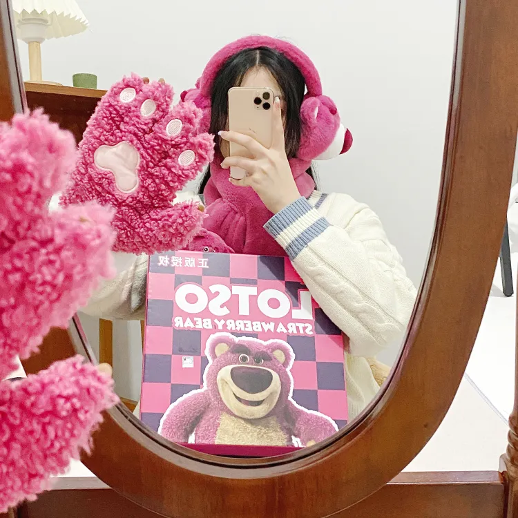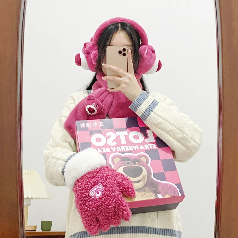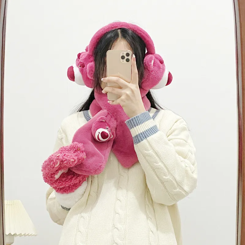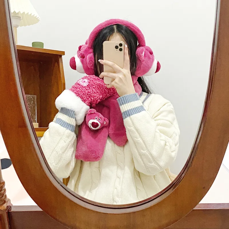 Disney Strawberry Bear Series Шапки & Кепки, Шарф, Маска для лица, Перчатки ТРЕХкомпонентный Набор, Подарочный Набор из 3 Аксессуаров для кукол