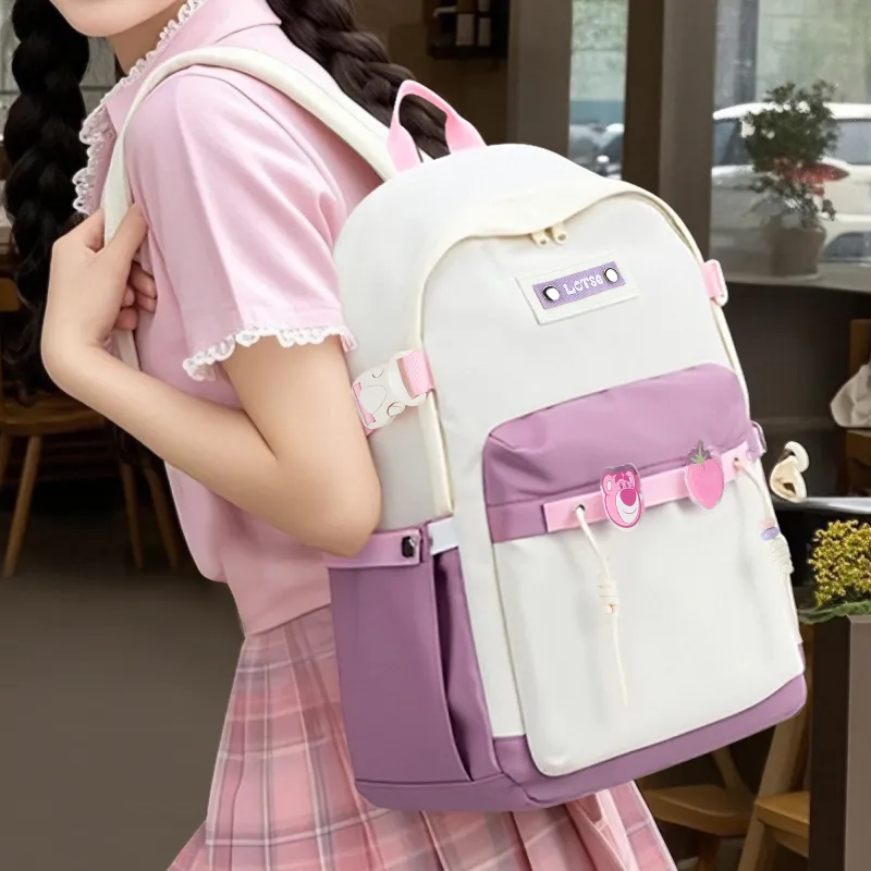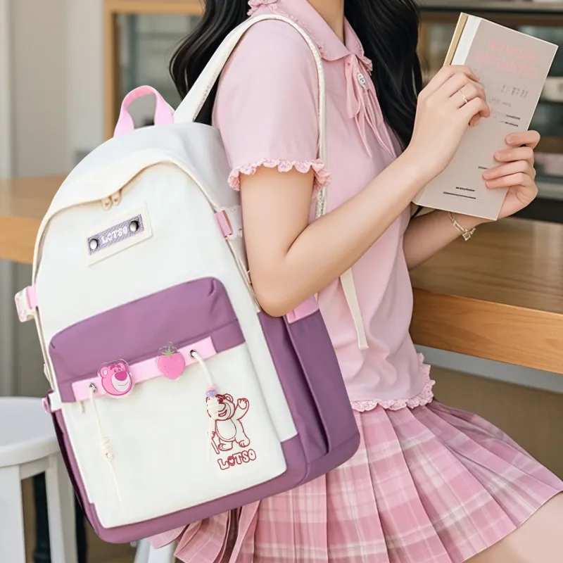 Disney Strawberry Bear Series Полиамид Рюкзак Женские Розовый Белый