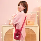 Disney Strawberry Bear Series Полиэстер Искусственная замша Одно плечо Сумка через плечо Сумка через плечо Маленькая Женская Розовая Красная