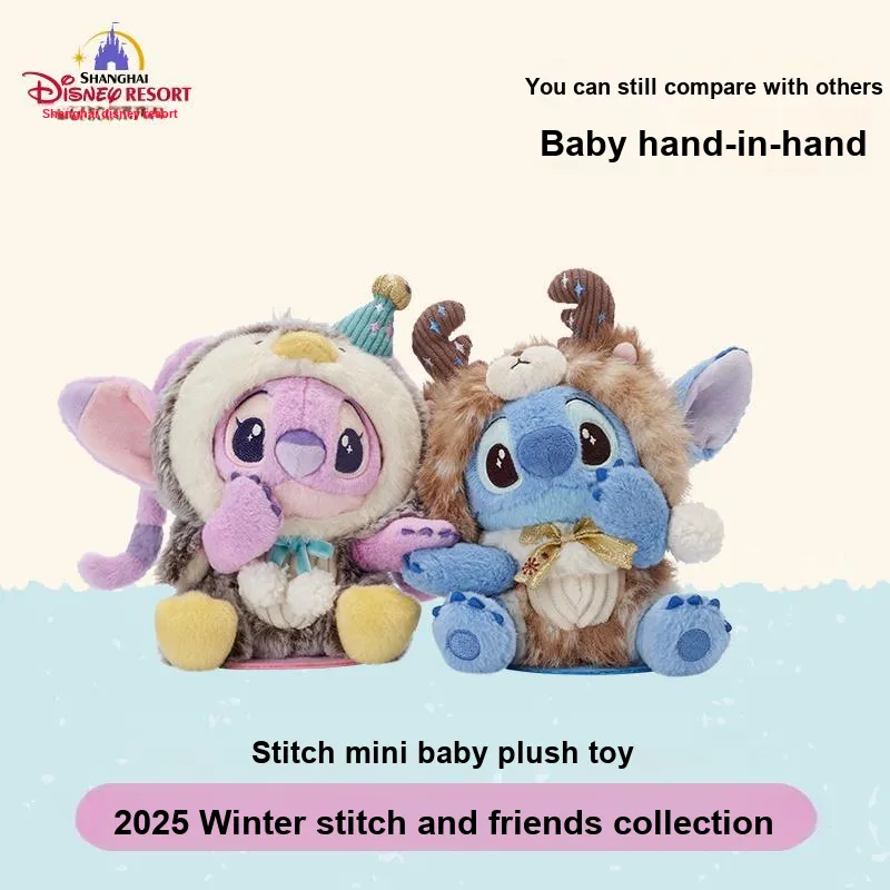 Disney x DISNEYLAND 2025 Зимние Стич и друзья Куклы Плюшевая кукла 12,5 см Длина тела Шанхай Дисней