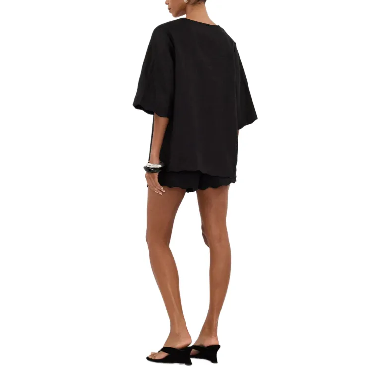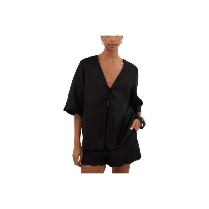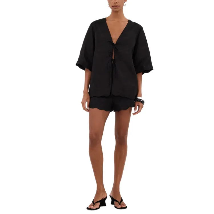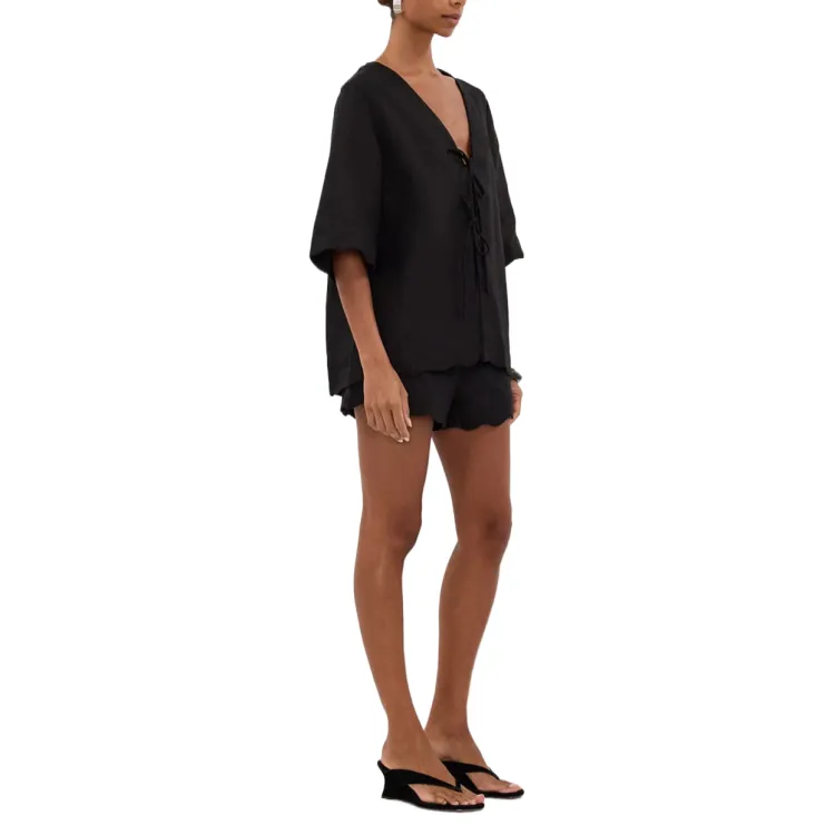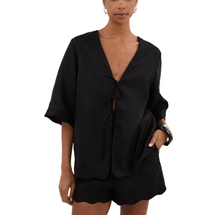 DISSH Черная Короткая Рубашка из Льна для Женщин
