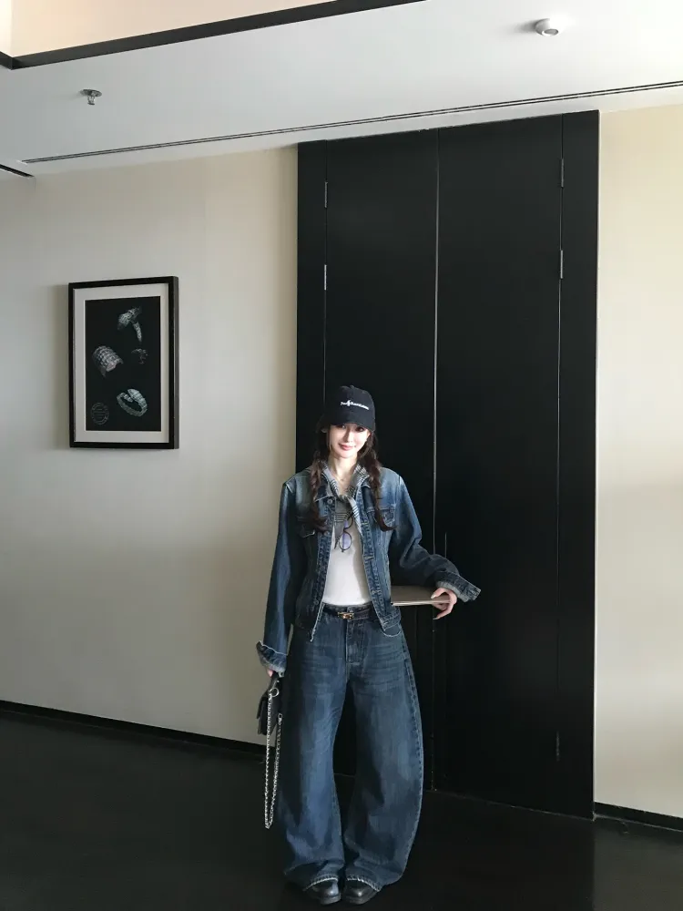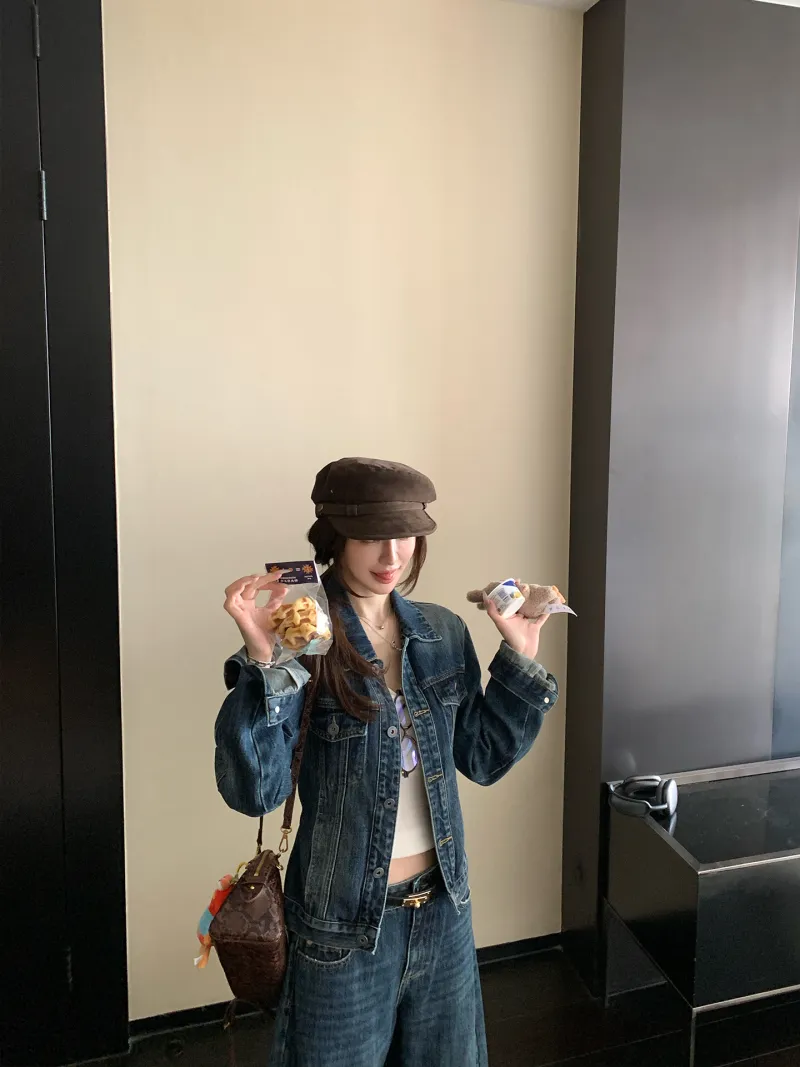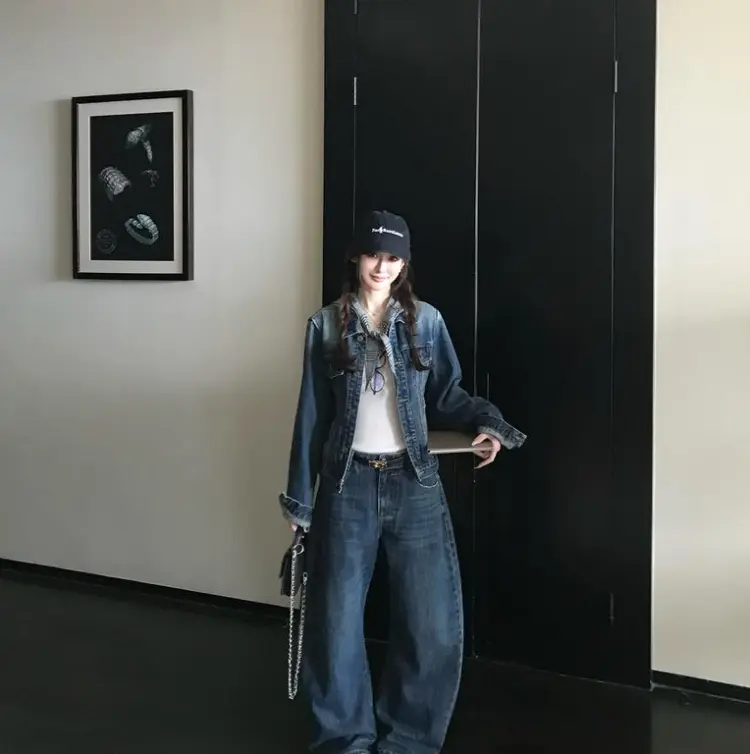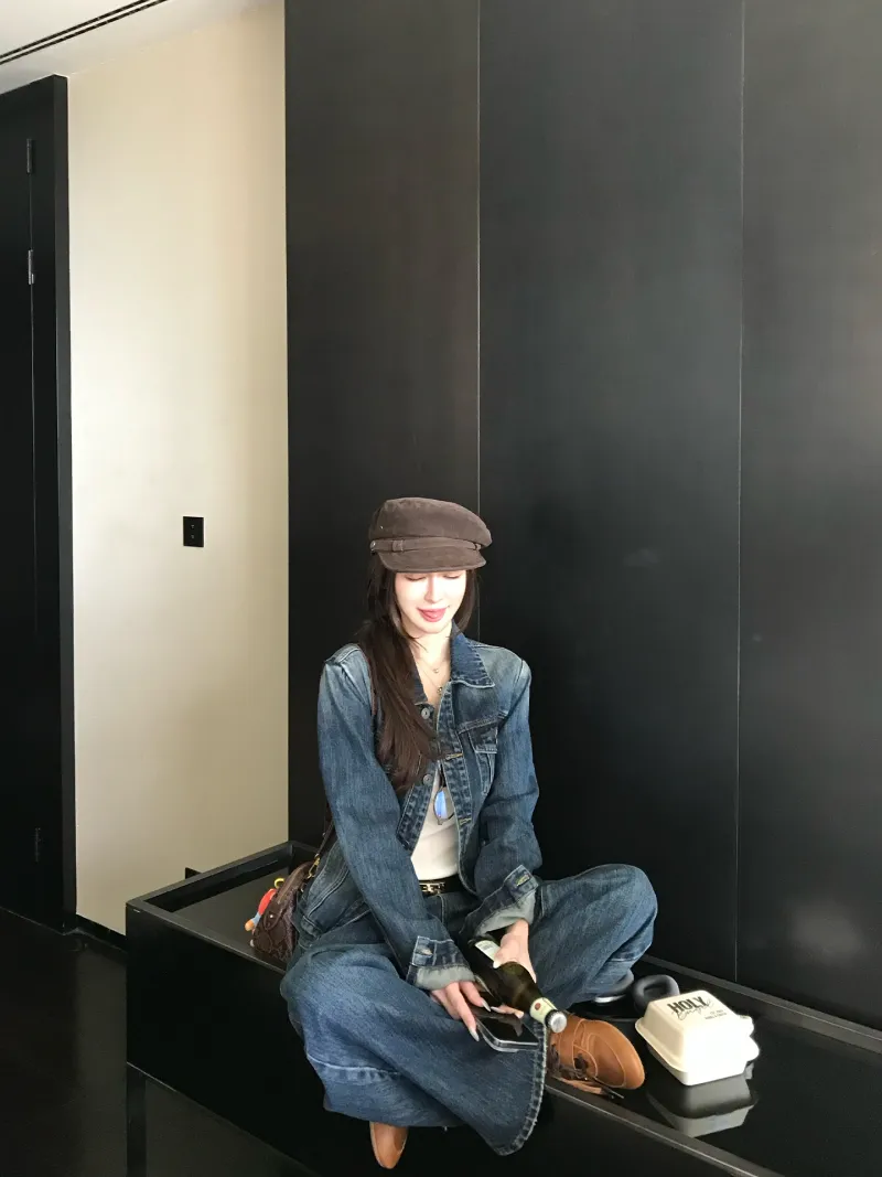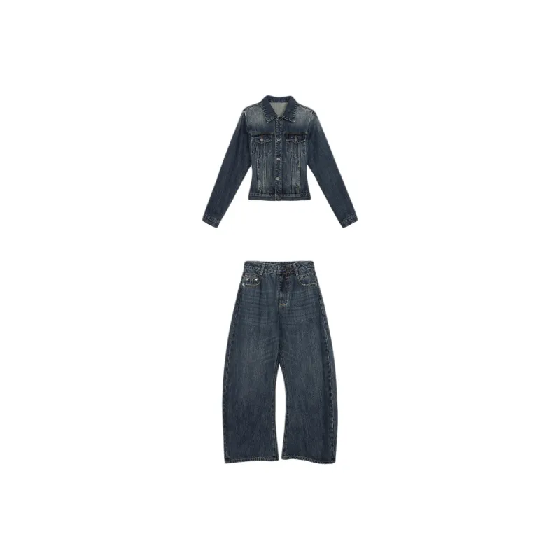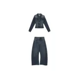 DITB Выстиранный Синий Женский Повседневный Костюм