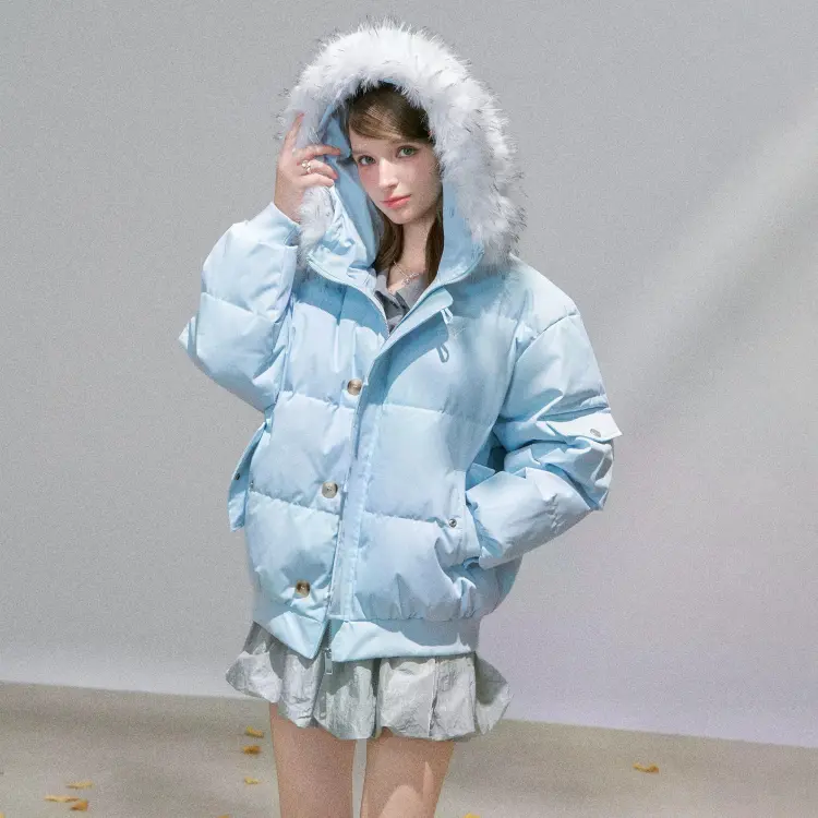 Цвет:Синий, меховой воротник, съемный