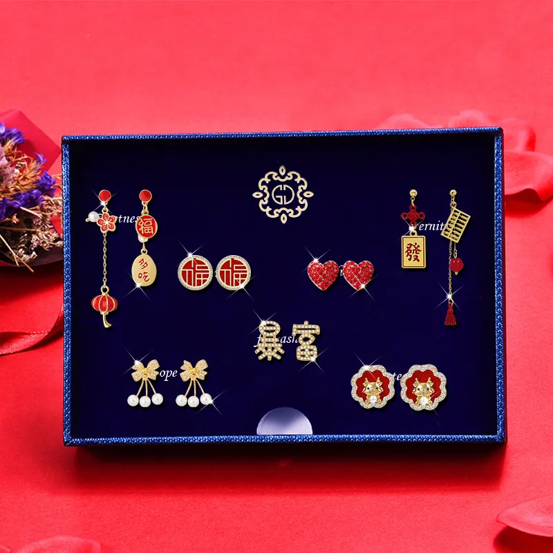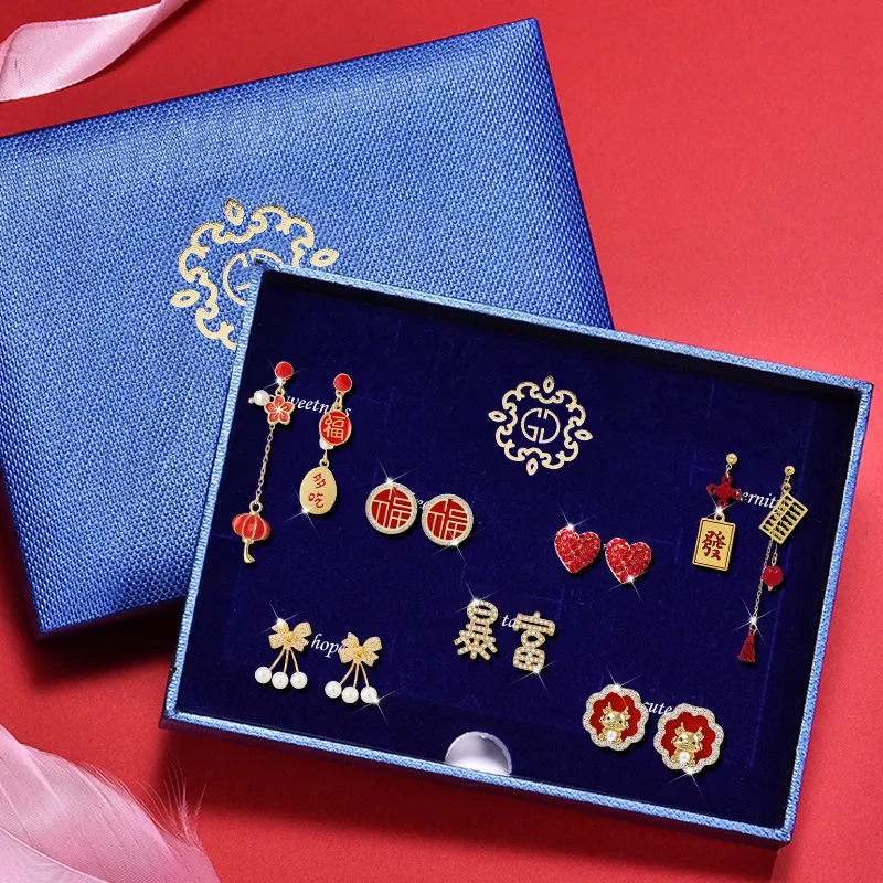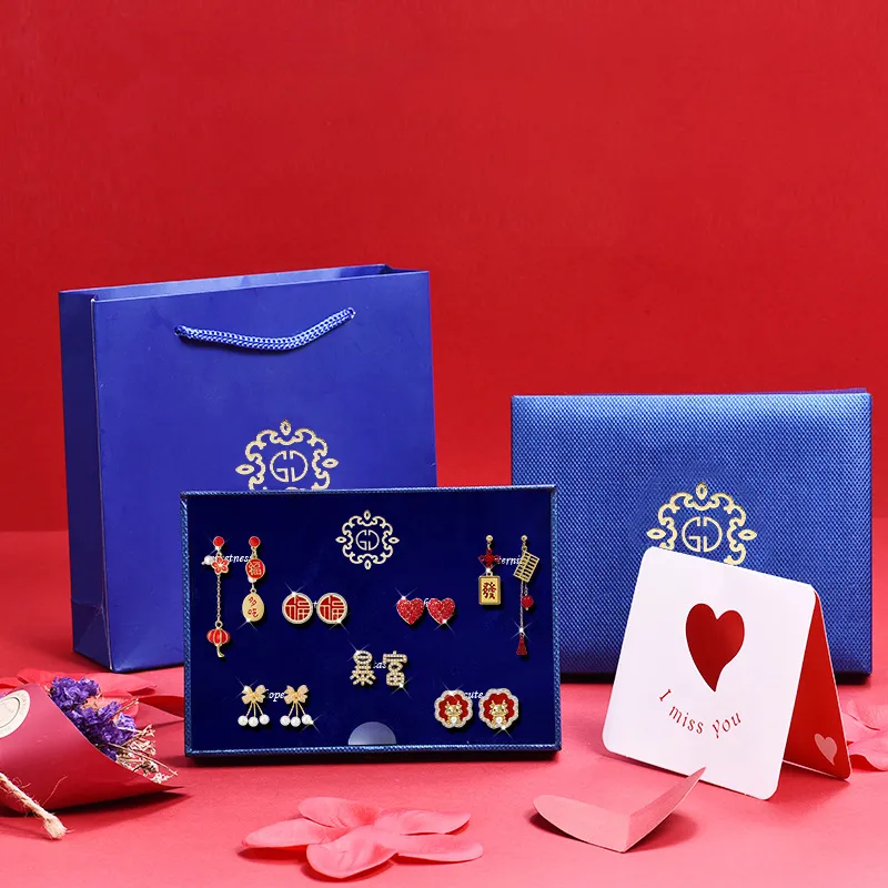 Стиль:TW370 Новый год Богатые Серьги-гвоздики Подарочная коробка