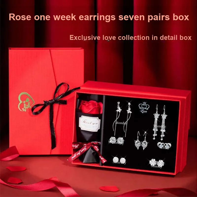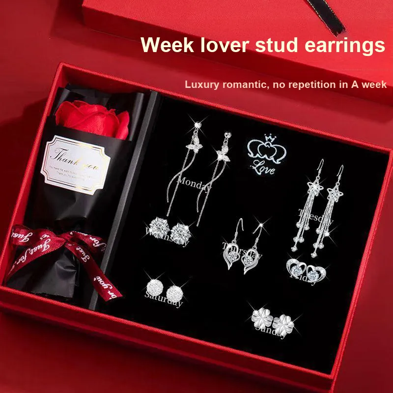 TW539 Неделя Мода Серьги-гвоздики Коробка, Семь штук