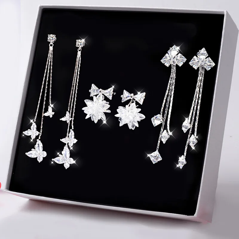 Стиль:TW77 Сердцебиение кисточка Длинные серьги Набор из трех предметов