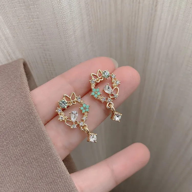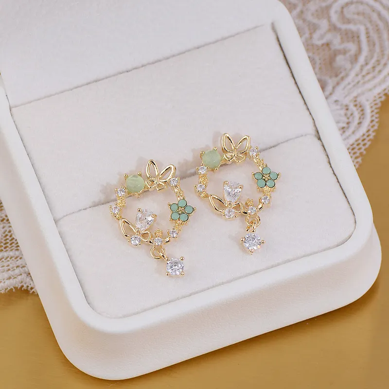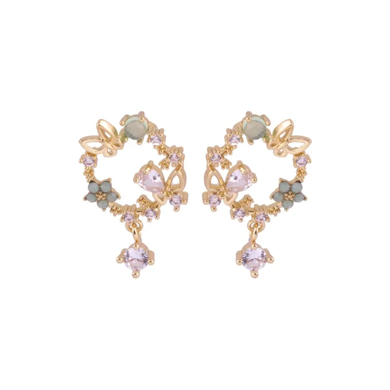 Стиль:Серьги-клипсы E568 в стиле Мори, золотые, с бабочкой и гирляндой