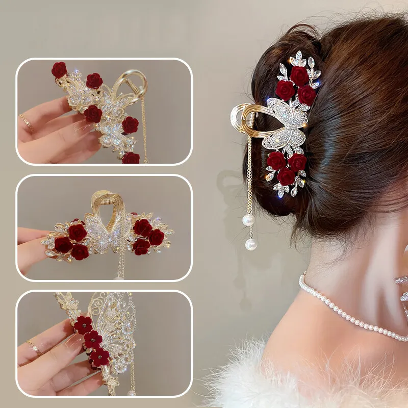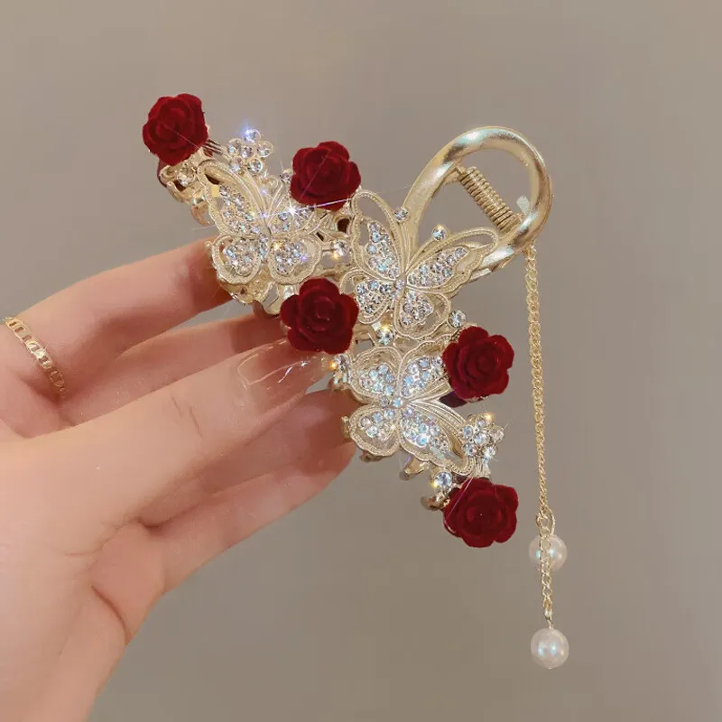Стиль:TD70 Стиль Мори Розовый Бабочка Кисточка Заколка для волос, Набор из трех предметов, Примерно 10 см