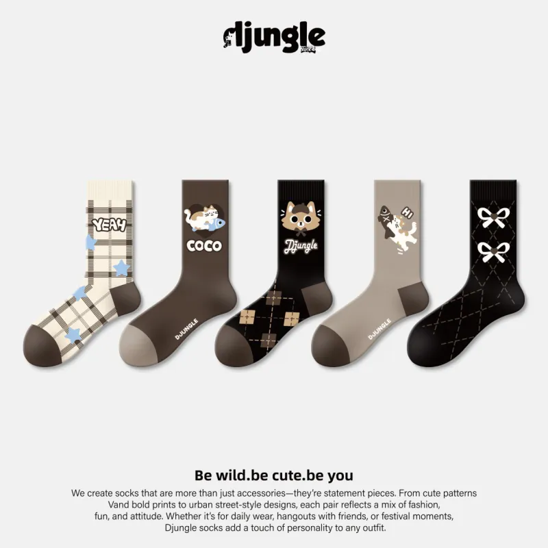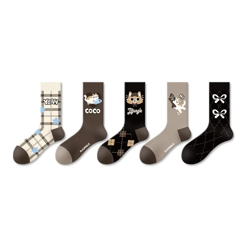 DJUNGLE Meow Sugar Какао 5 пар Женские носки до икры MID