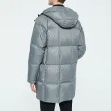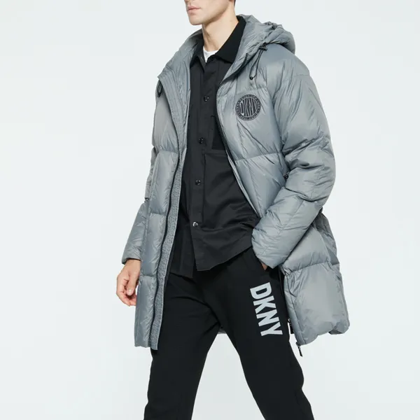 DKNY FW22 Однотонный С капюшоном Утолщенный MID Длина Пуховик Мужской Темно-серый