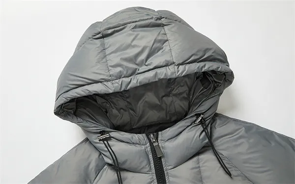 Ткань: 100% нейлон Подкладка: 100% полиэстер Большая основная часть, наполнитель рукавов: белый утиный пух Содержание хлопкового ворса: 90% Другие местные наполнители, такие как капюшон: 100% полиэстер Наполнитель: M/186 г; L/196 г; XL/206 г; XXL/216 г