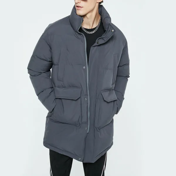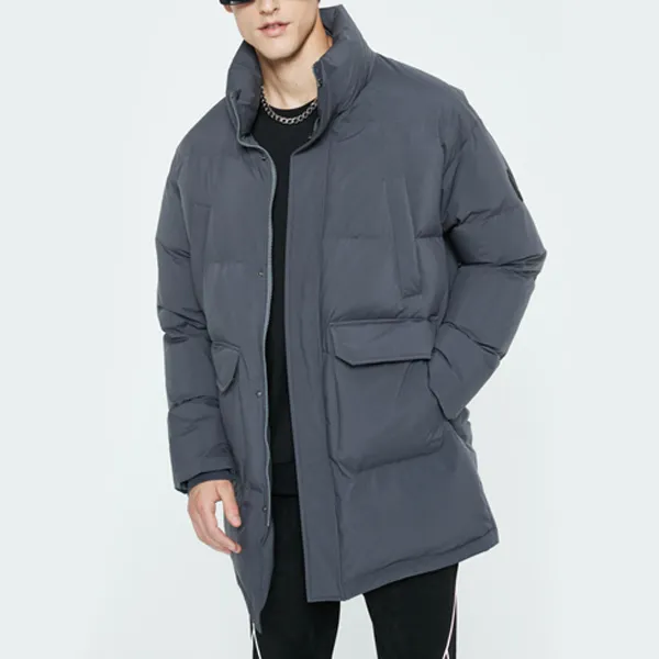 DKNY FW22 Однотонный Воротник-стойка Утолщенный Пуховик Мужской Темно-серый