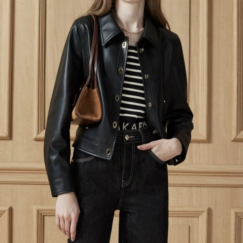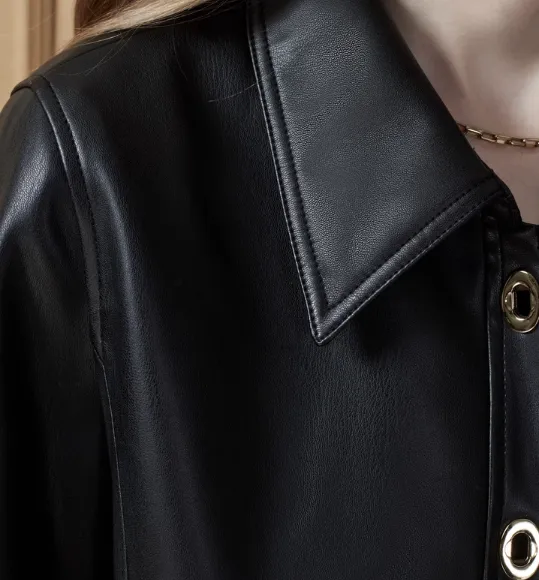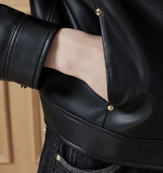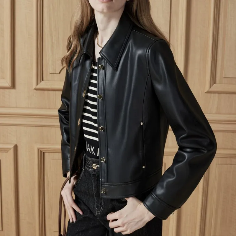 DKNY Кожа Куртка Женская Черная