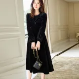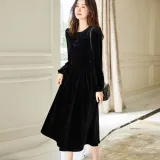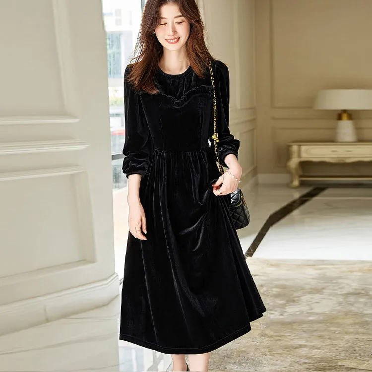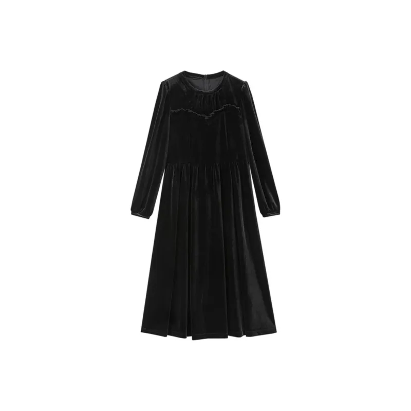 Dme Черное Женское Длинное Платье с Рукавами