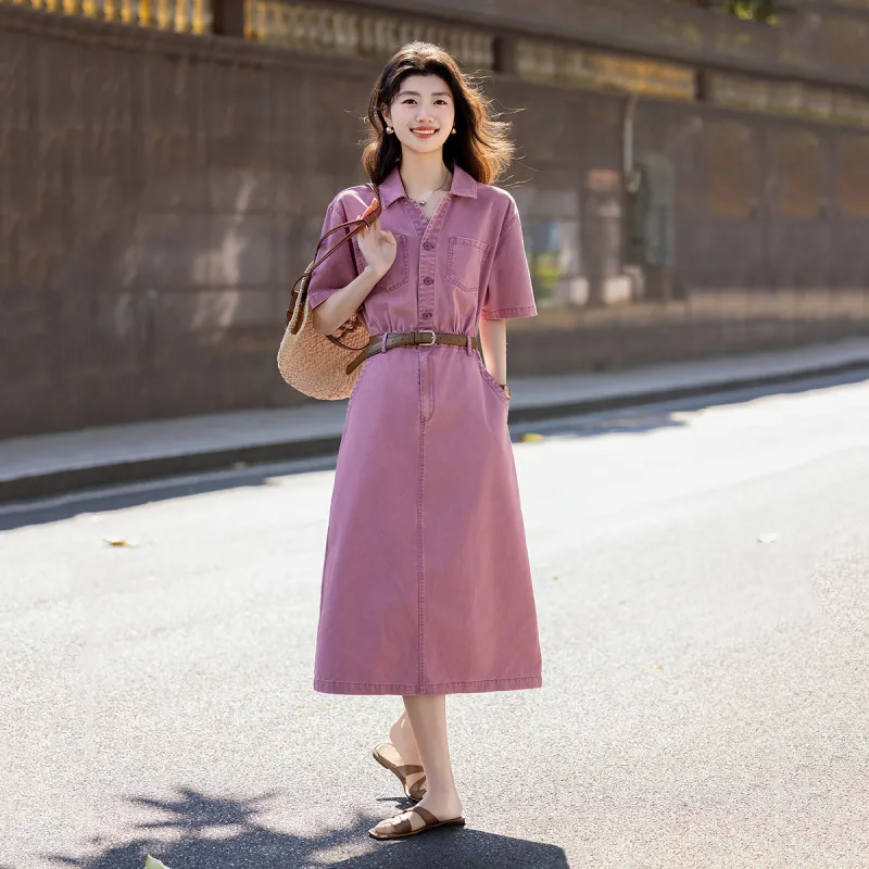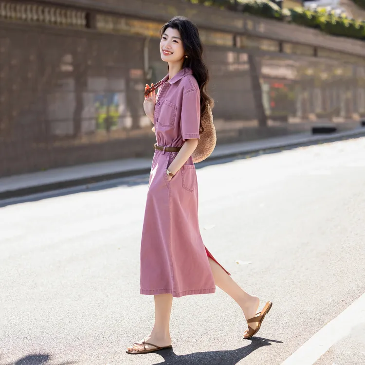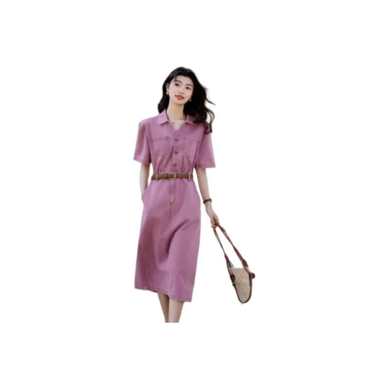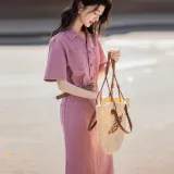 【Dme】 Короткий рукав платье женское розовый