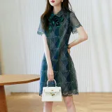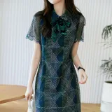 Dme Морской зеленый Женские Короткие Платья с Рукавами