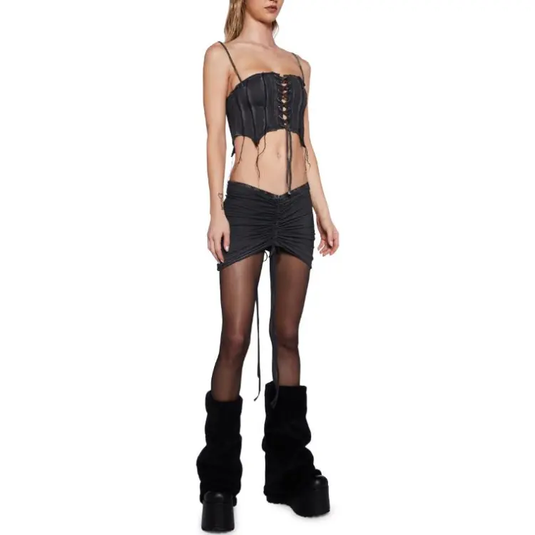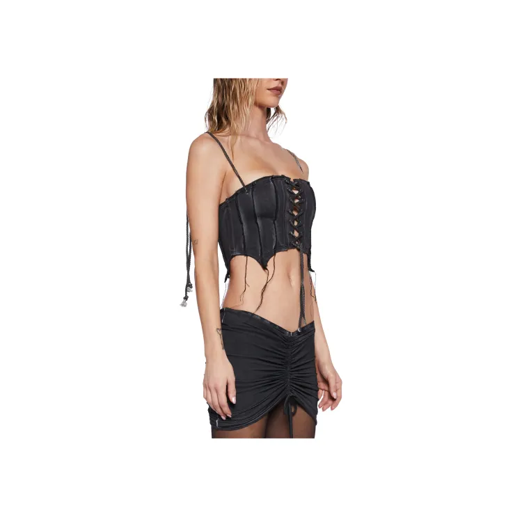 Dolls Kill DARKER WAVS Pitch Washed Corset Top Топ на бретелях Женские Черный