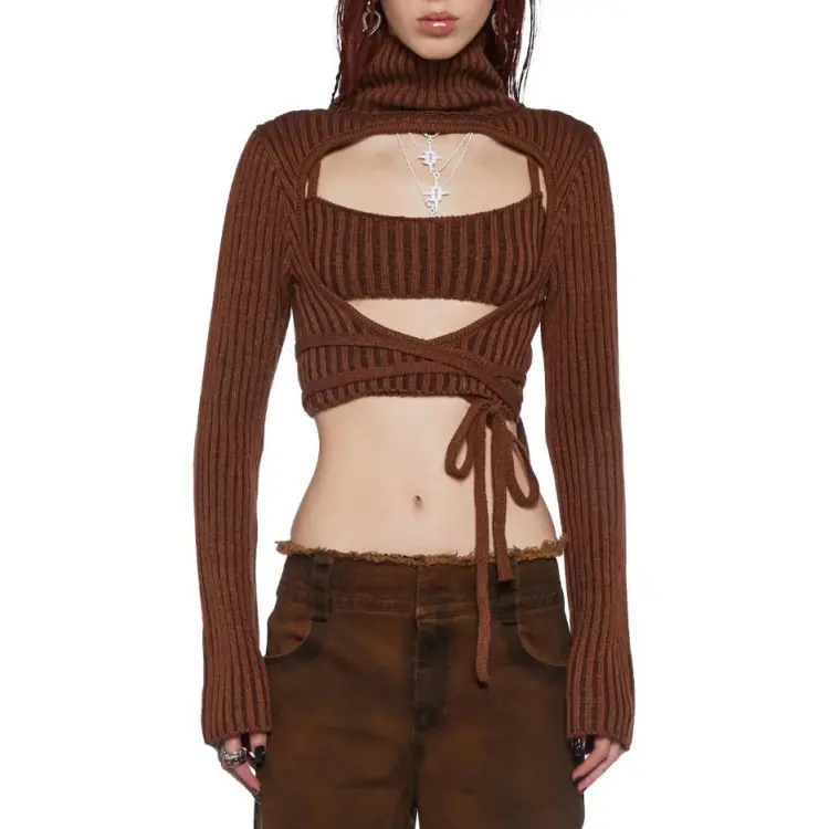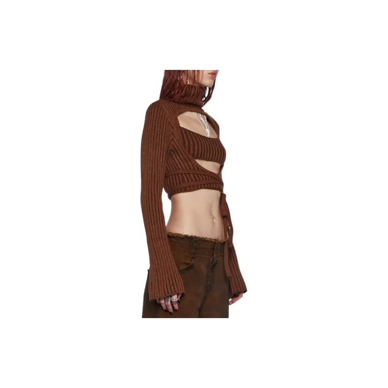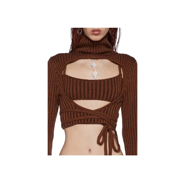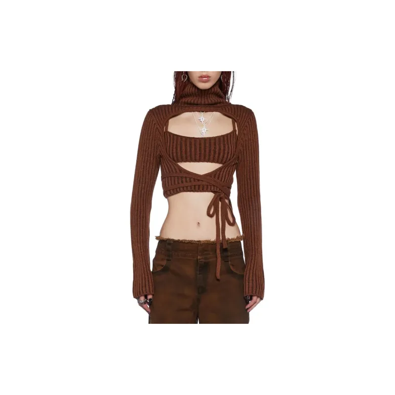 Dolls Kill SS24 DARKER WAVS Fader Танк и Свитер Комплект Повседневный Костюм Женский Коричневый Коричневый
