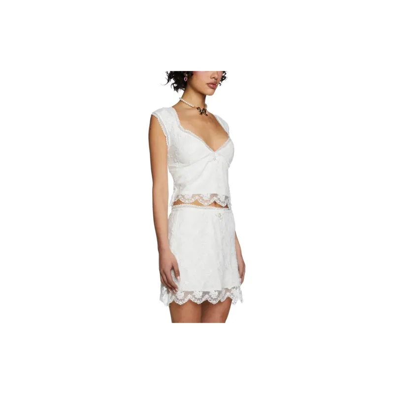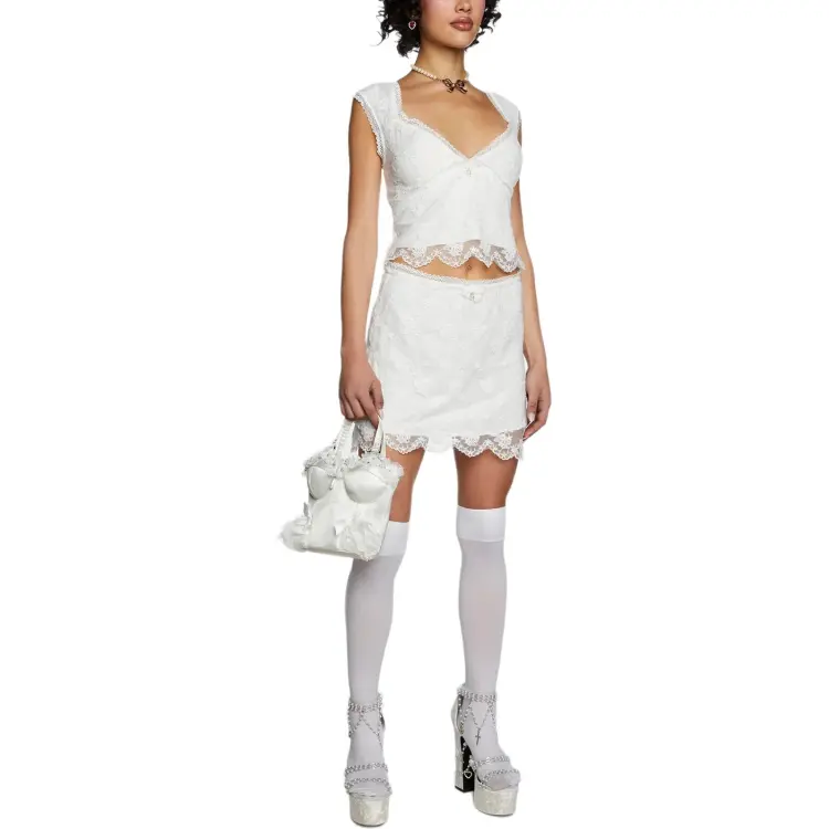 Dolls Kill Sugar Thrillz Графский THE WAYS Кружево Топ CROP TOP Женские Белый Белый