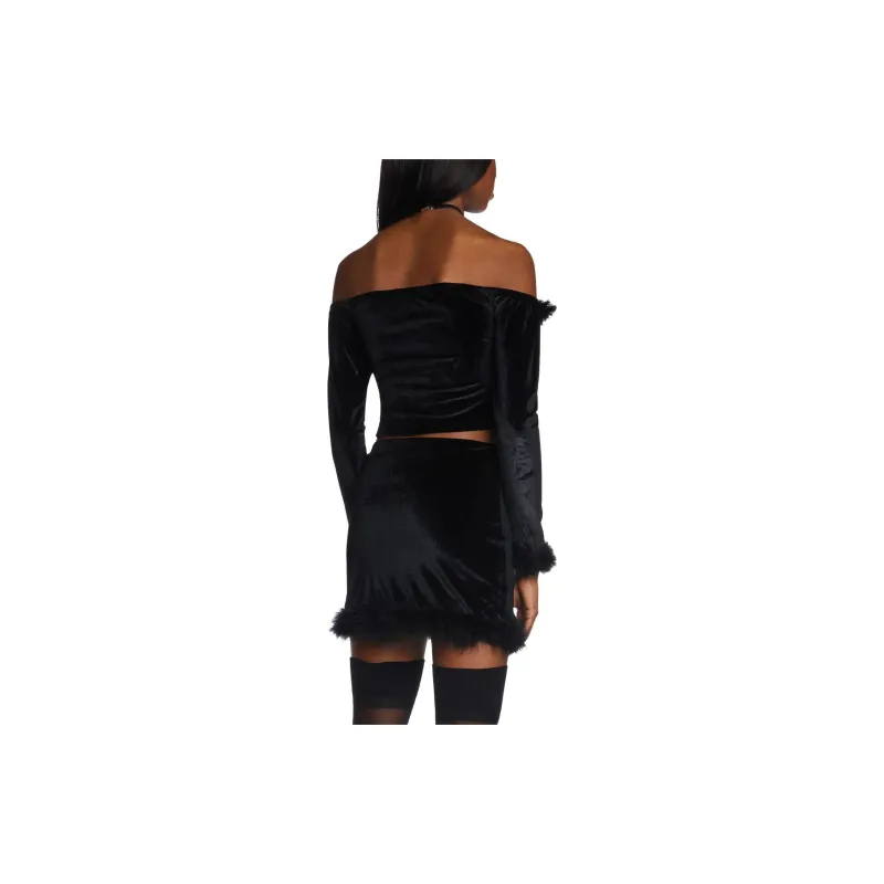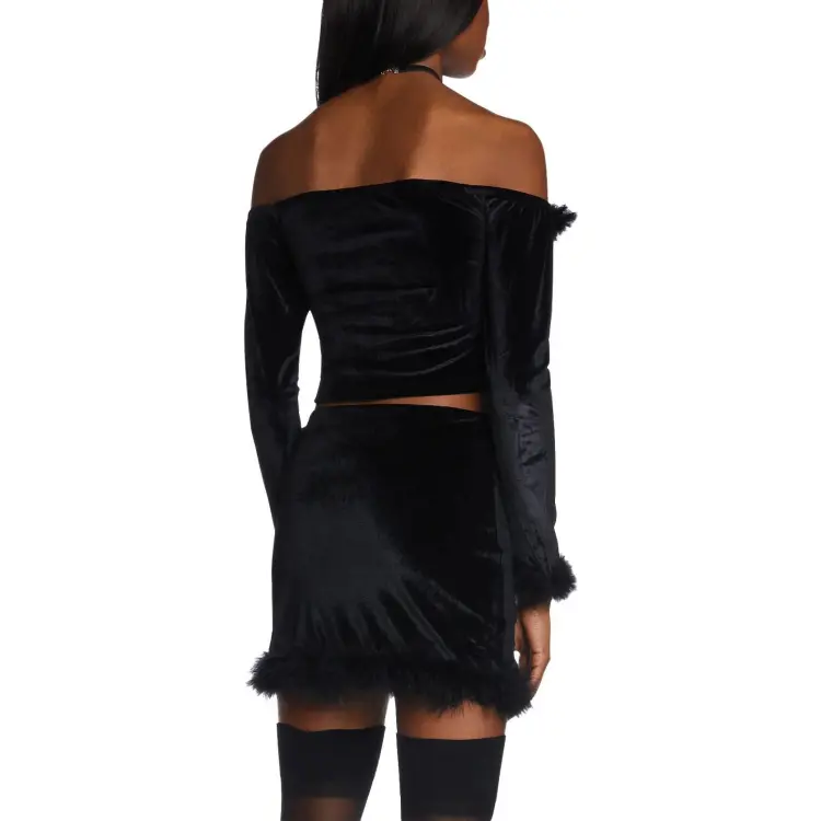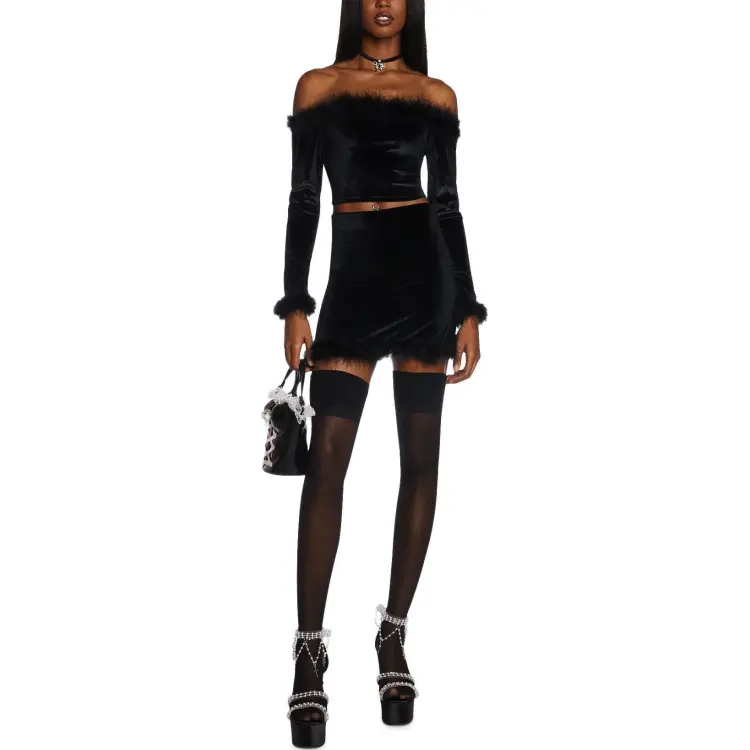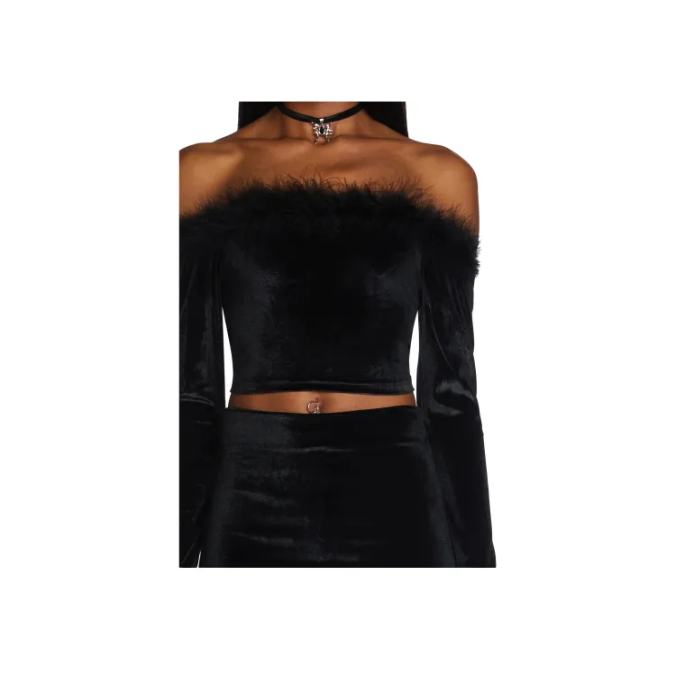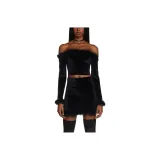 Dolls Kill Sugar Thrillz Filthy Femme VELVET CROP TOP CROP TOP Женские Черный Черный
