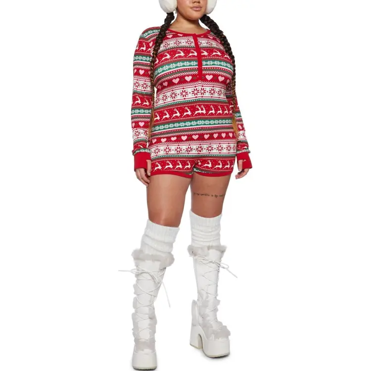 Dolls Kill Sugar Thrillz Плюс Snowy Soiree KNIT Romper Комбинезон Женские Красный Красный