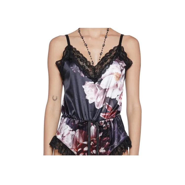 Dolls Kill Widow Основной Witchery Satin Teddy Комбинезон Женские Цветочный Многоцветный
