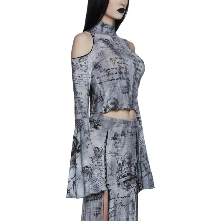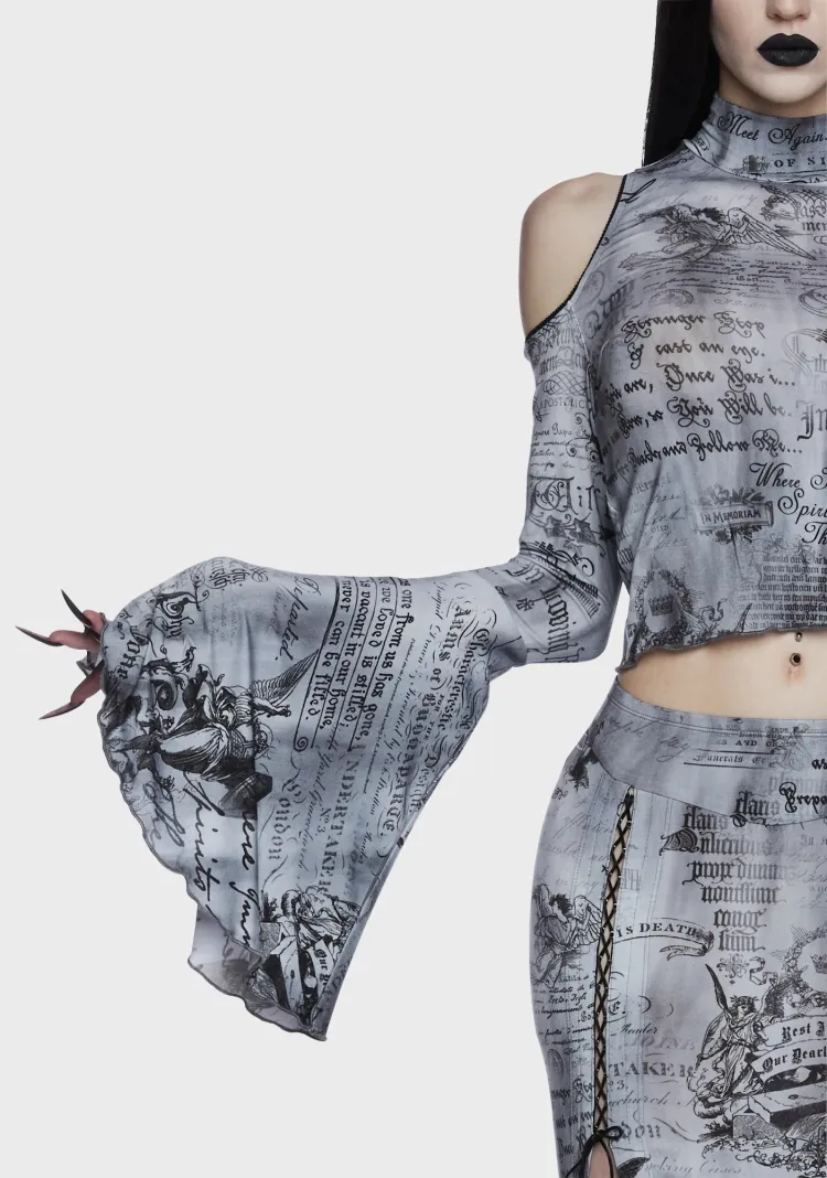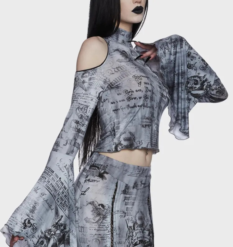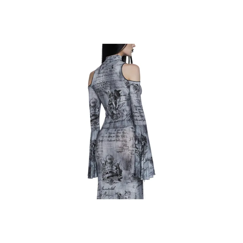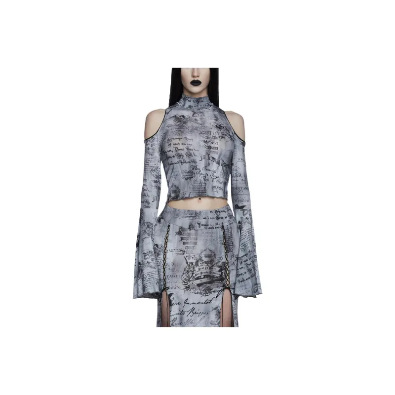 Dolls Kill Widow Темные Writings Длинный рукав Т Рубашка Женская MULTI Многоцветная
