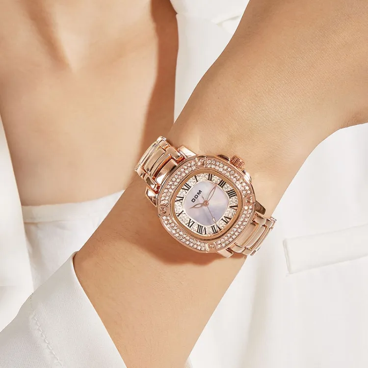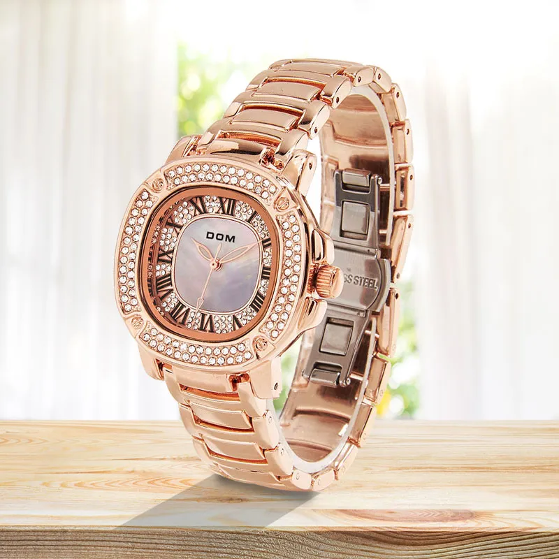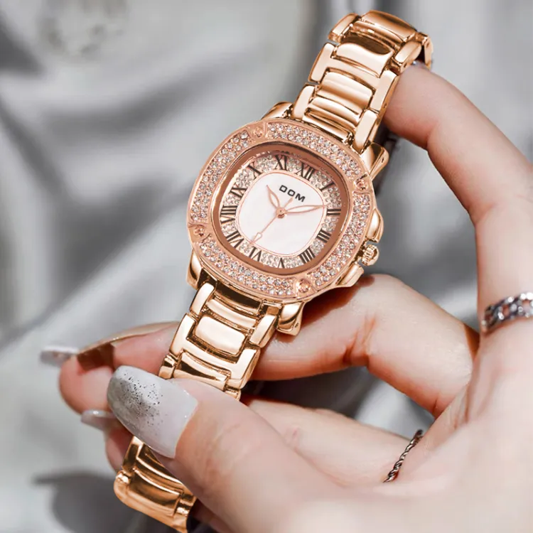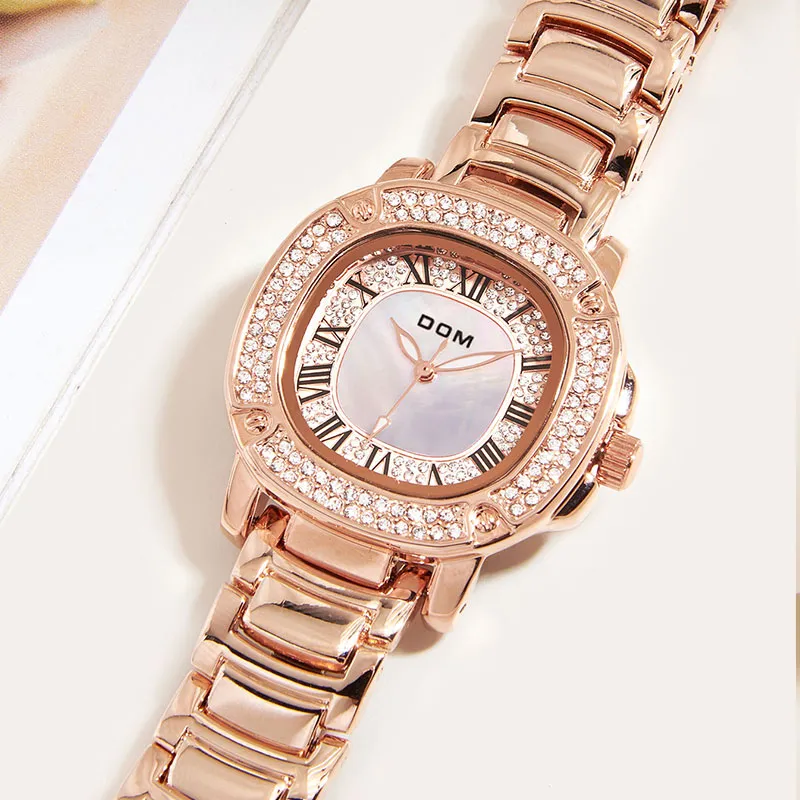 DOM Gold Small Square Watch Кварцевый механизм Нержавеющая сталь Ремешок Часы Женские часы Золотой циферблат 6923411193120