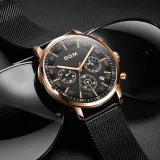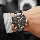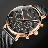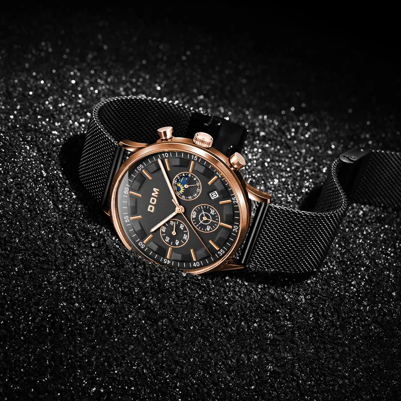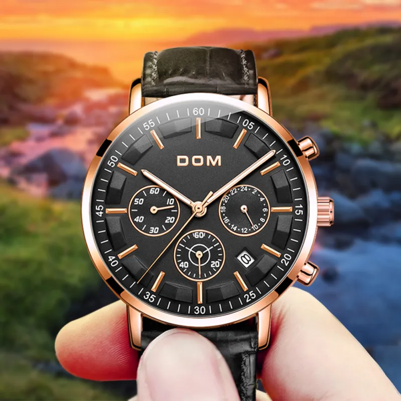DOM Кварцевый механизм кожаный ремешок мужские часы черный циферблат