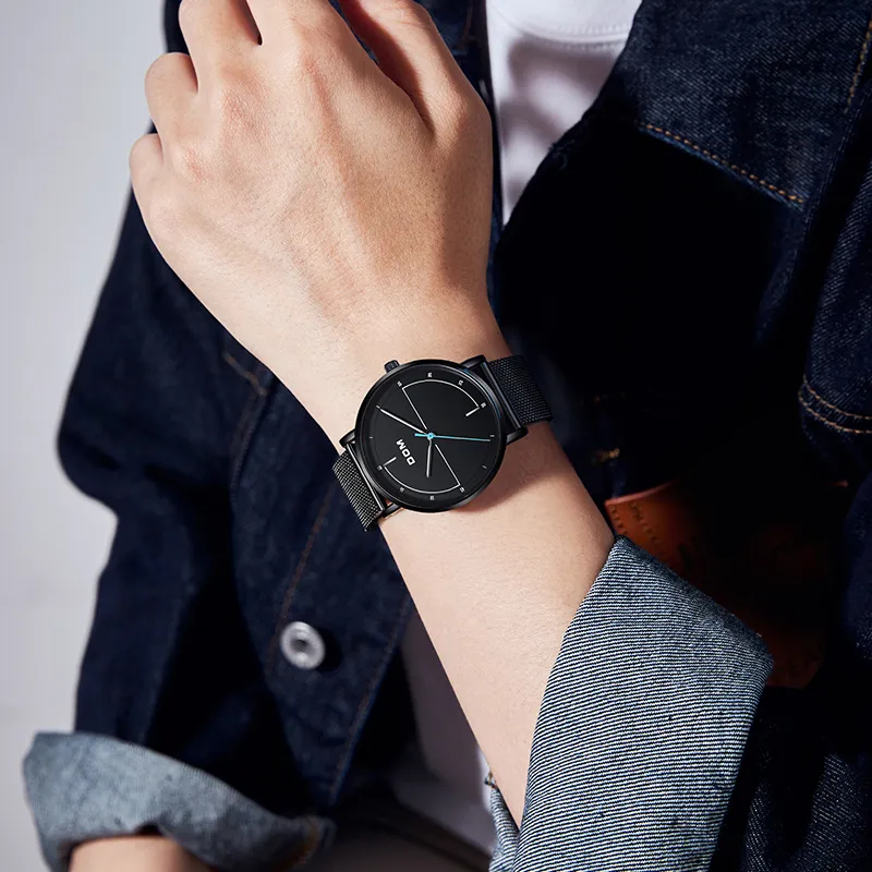 DOM Кварцевый механизм Часы Унисекс Белый циферблат