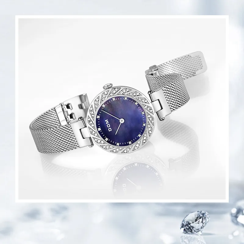 DOM Кварцевый механизм Часы Женские Синий циферблат